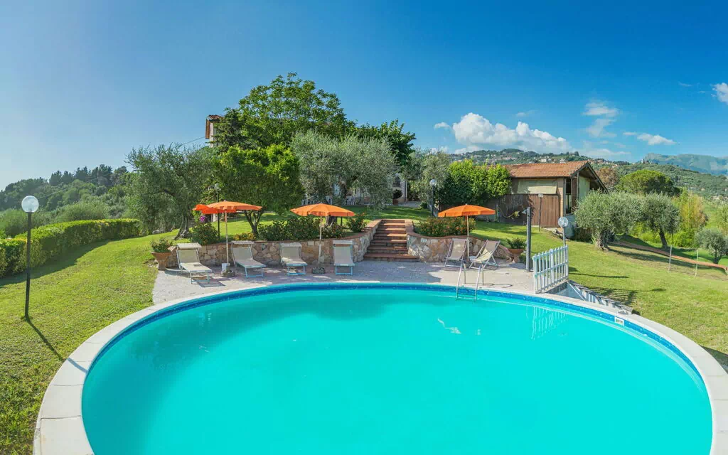 Nestled among the rolling hills of Massarosa, in the heart of Tuscany, Italy, Villa Le Casette is a recently renovated rustic villa that offers a breathtaking panoramic view of the Versilia coast. Set within a generous private estate, this detached property is surrounded by trees, meadows, a flower garden, an olive grove, and an orchard, creating a serene and immersive natural setting. The villa enjoys an exceptionally peaceful position while remaining well connected to the road network, allowing convenient access to the most celebrated cities of Tuscany. A private round swimming pool, available seasonally from May 13th to September 30th, invites you to relax and unwind in complete privacy. The expansive yard surrounding the property enhances the sense of space and seclusion, while on-site parking ensures a comfortable and practical stay from the moment of your arrival.