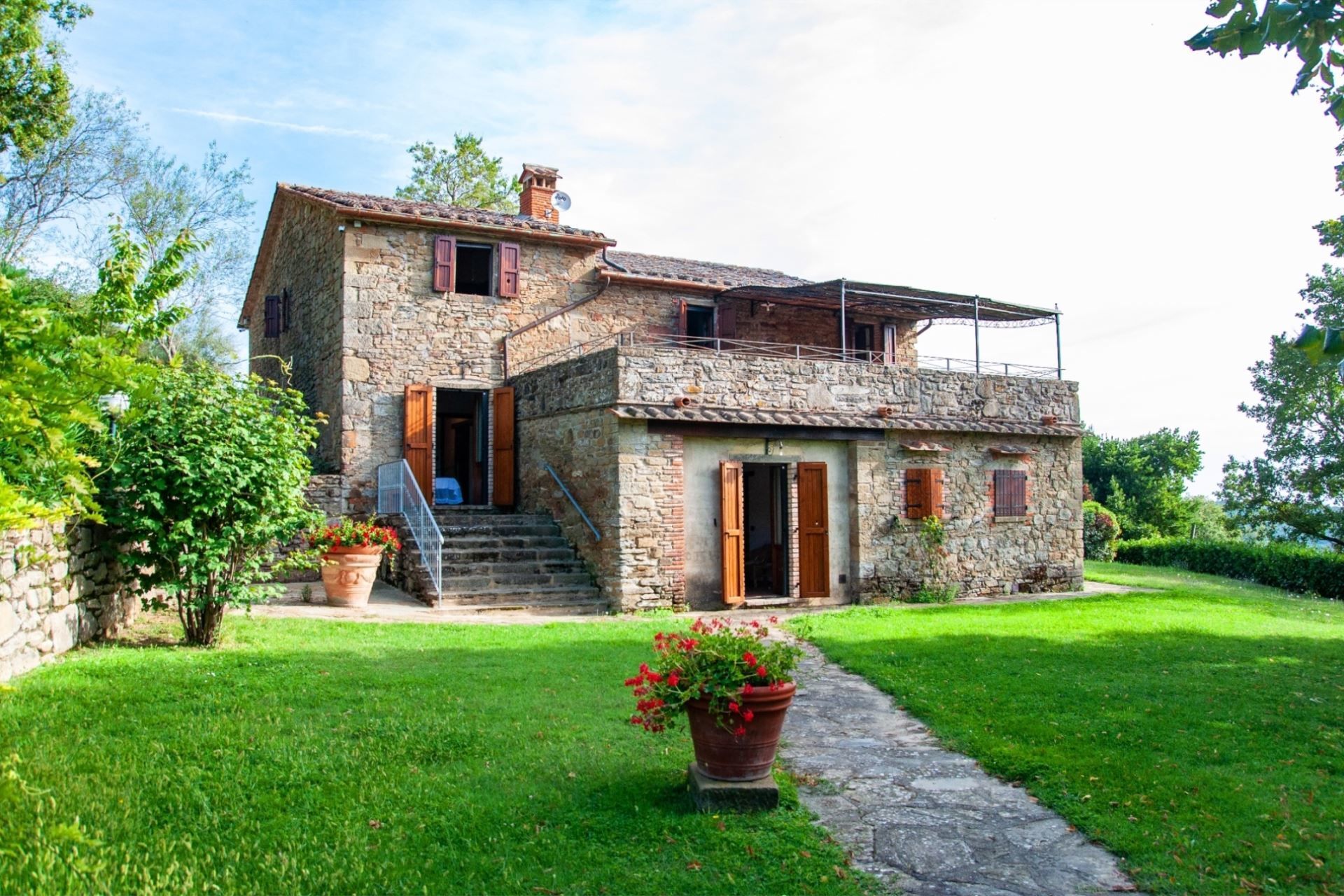 Stone farmhouse on the border between Umbria and Tuscany. Villa Val di Rose is an ancient stone farmhouse located on a panoramic position in the green hills at the border between Umbria and Tuscany, only a few km away from the characteristic village of Lisciano Niccone. Lisciano Niccone has really old origins, in its vicinity even some Etruscan remains were found and today there are restaurants, shops and services.