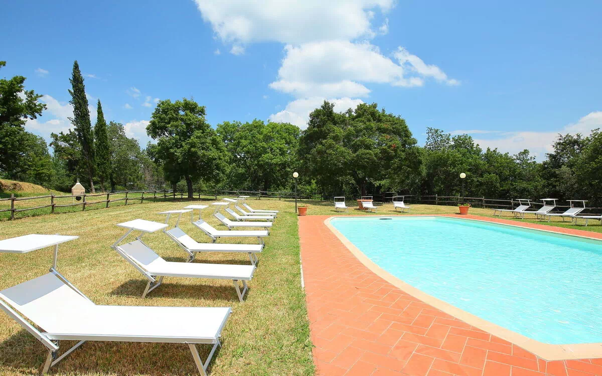 The farm of Palazzuolo Vecchio was originally a castle, destroyed by the Sienese around 1100. During renovation, signs of this historical event were discovered, with walls showing clear evidence of a fire. Already by the year 1000 the area was known as Palazzuolo Vecchio, indicating that its origins are undoubtedly much older and in fact ancient worked stones can be identified within the walls. The property, which is made up of three independent buildings, lies about 3 km from the main farm buildings of Fattoria Marengo. Around the swimming-pool an extensive natural green area is available for general recreation. The properties have been renovated preserving their original features, ceilings with chestnut beams and terracotta floors, while they have been furnished in traditional rustic style. By agreement with the property you can arrange, playing tennis, guided tours of the winery with tasting of products, participate in cooking classes, wine tasting / olive oil. Agreement with the spa (15 km). Welcome basket on request. Extra. Babysitting on request. Farm estate "Palazzuolo Vecchio", surrounded by meadows, fields and vineyards. 2 houses in the residence. 3 apartments in the residence. 12 km from the centre of Monte San Savino, 35 km from the centre of Siena, 31 km from the centre of Arezzo. For shared use: garden with lawn, swimming pool fenced (7 x 14 m, depth 143 cm, 25.05.-30.09.). Outdoor shower, tennis, barbecue. In the house: washing machine, tumble dryer, drying room, heating to be paid on the spot (01.11.-15.04.). Room cleaning on request (extra). Pre-arrival grocery service. Motor access (200 m via unmade road). Parking on the premises. Supermarket 12 km, restaurant 1 km, bakery 12 km, thermal baths "Rapolano Terme" 15 km. Golf course (9 hole) 30 km. Nearby attractions: Arezzo 31 km, Montepulciano 45 km, Siena 35 km. Please note: car recommended. On request: airport transfer to the holiday accommodation. Local sale of farm products. The photograph shows a typical example.