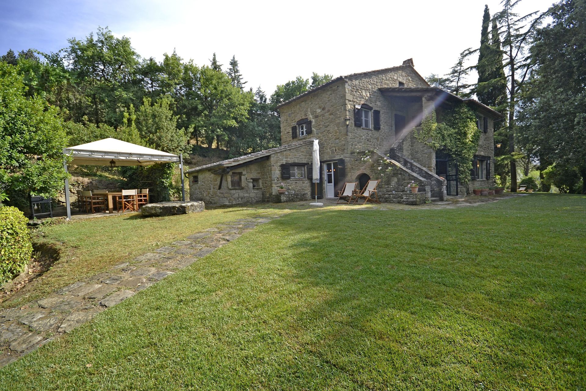 Vacation rental Villa Del Castagno is a lovely stone building (190 sq m) that includes air conditioning, WiFi internet and private pool. The property can accommodate up to seven guests comfortably in three bedrooms with three bathrooms. Villa Del Castagno is located 1 km (4118 ft) from Il Castagno, Italy and only 6 km (4 mi) from Cortona.