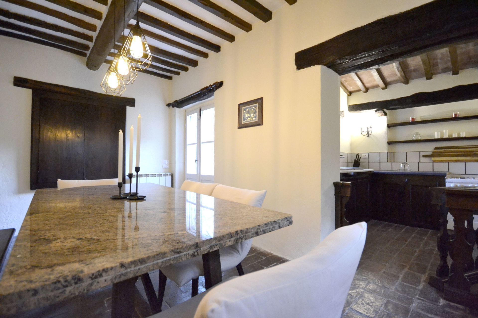 After arriving at Villa Del Castagno you’ll find a nice clean well-maintained property with views of the hills ideal for a peaceful holiday in Tuscany. After a busy day of visiting museums, spend some time with friends and family poolside enjoying a glass of wine - a perfect way to unwind at the end the day. Also available outside are a patio and barbecue grill. If you enjoy cooking for family and friends there is a well-equipped kitchen including coffee machine, toaster, stove and refrigerator, as well as, plenty of tableware and cutlery for up to seven people. If you prefer to dine 'al fresco', there is a fully furnished patio where you can enjoy the weather while dining outdoors.