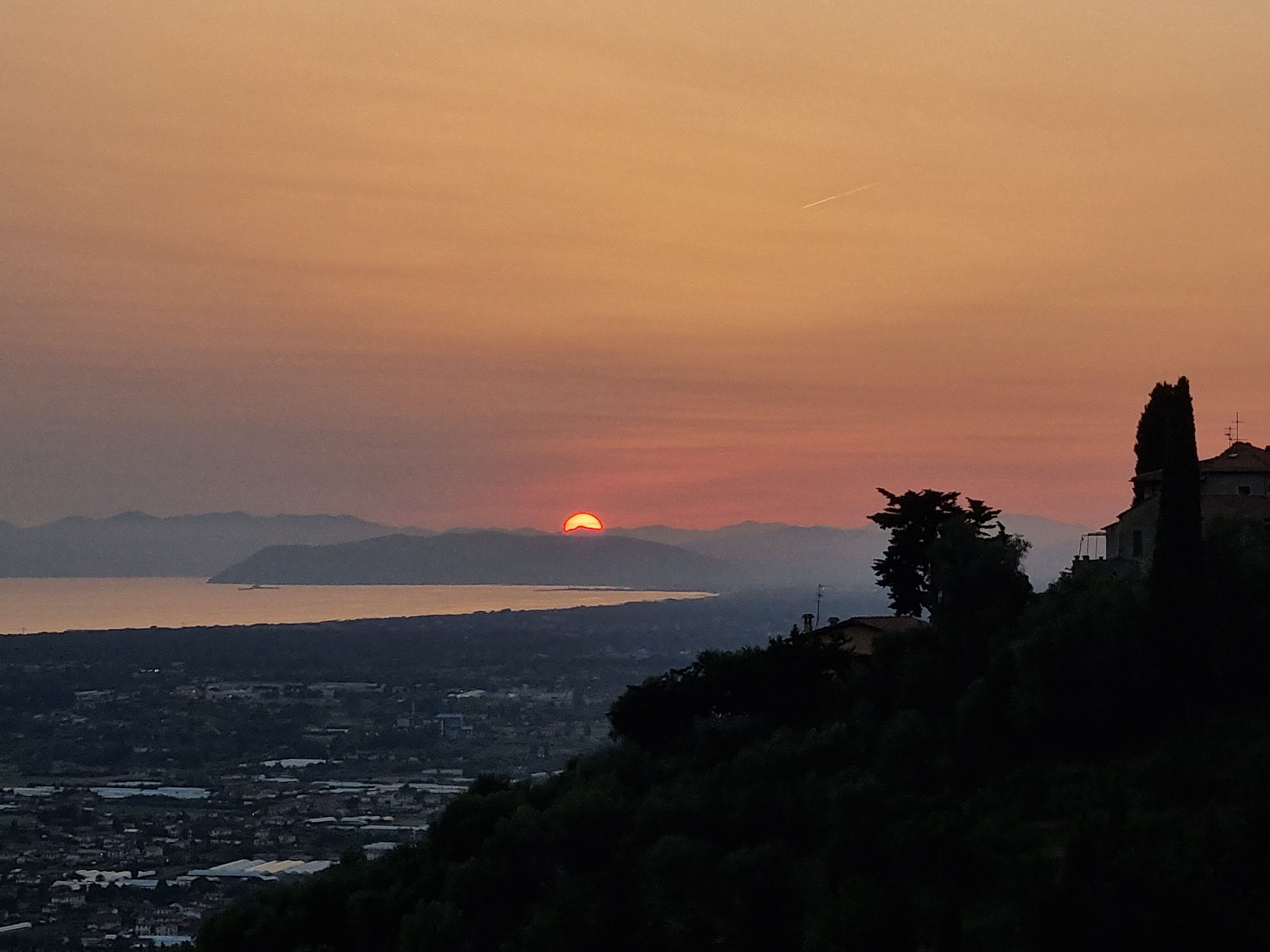 From its location at height of about 300 meters, the wonderful view extends north from above the beaches of Viareggio and Forte dei Marmi, on through the Gulf of La Spezia and on past the famous Cinque Terre.