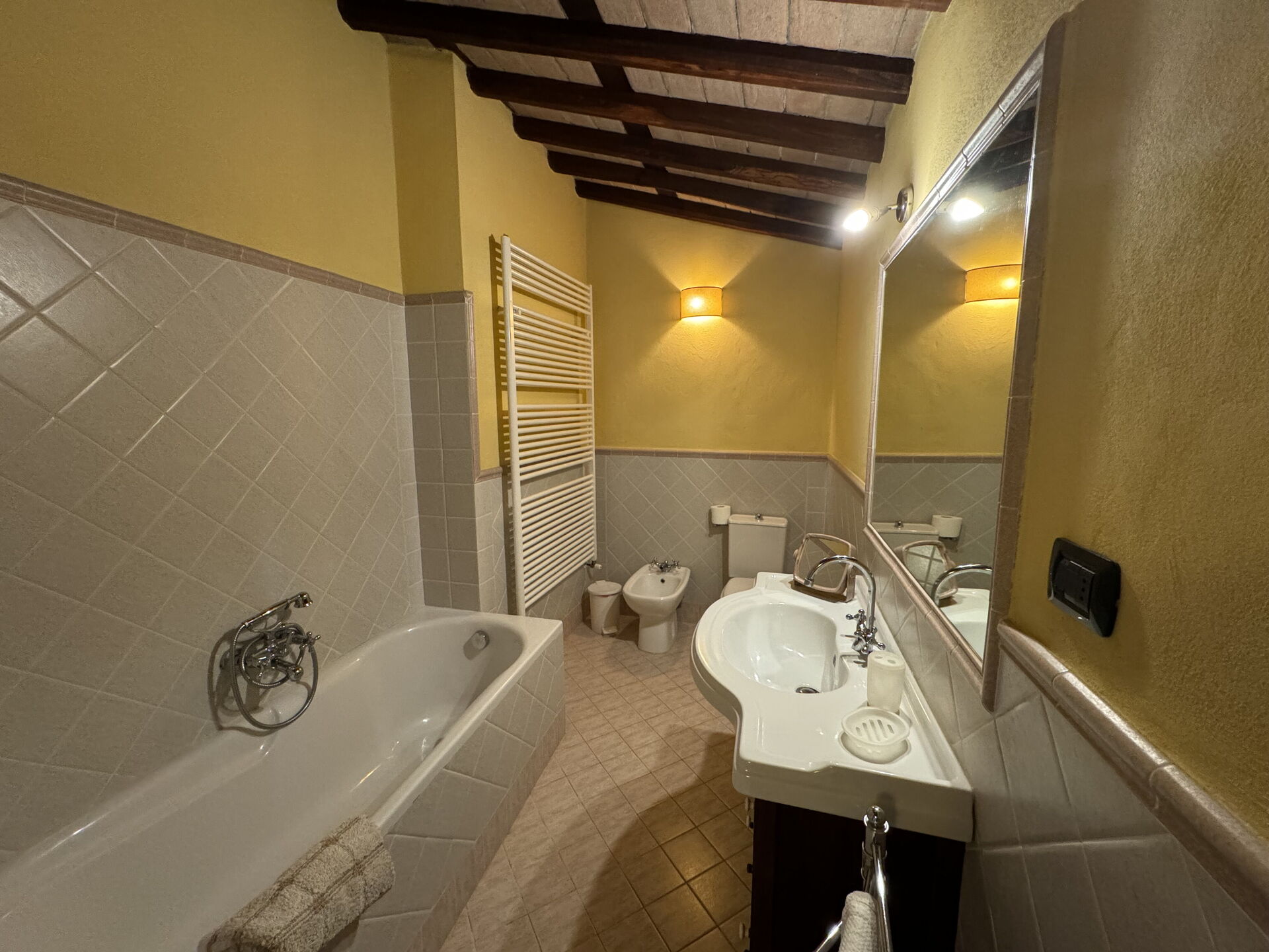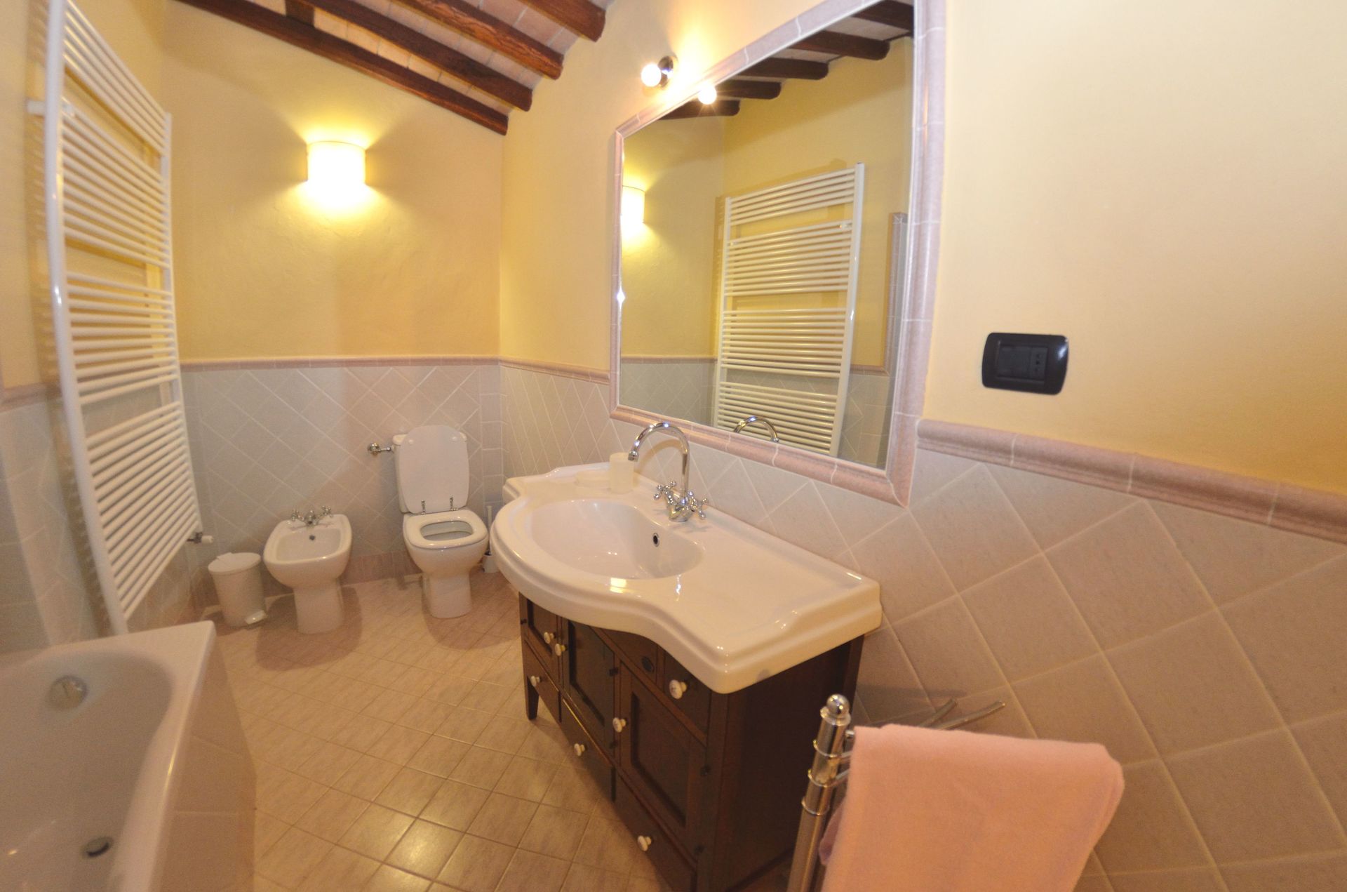 Bathroom: basin, toilet, bidet, bathtub, shower.