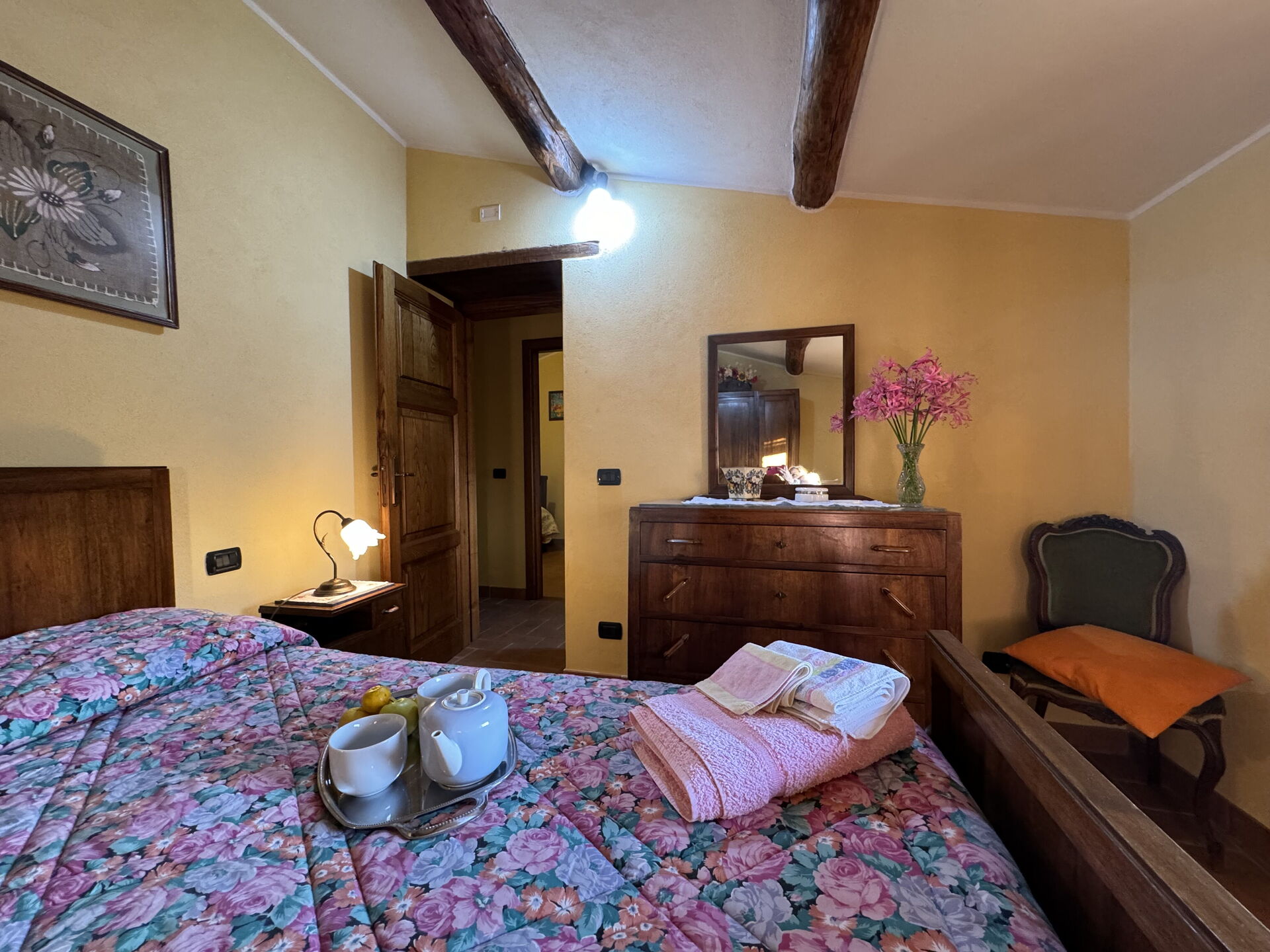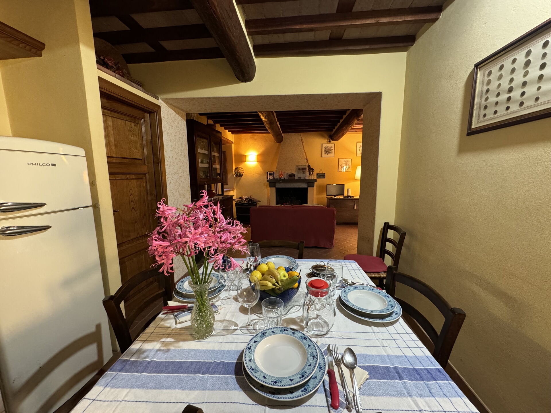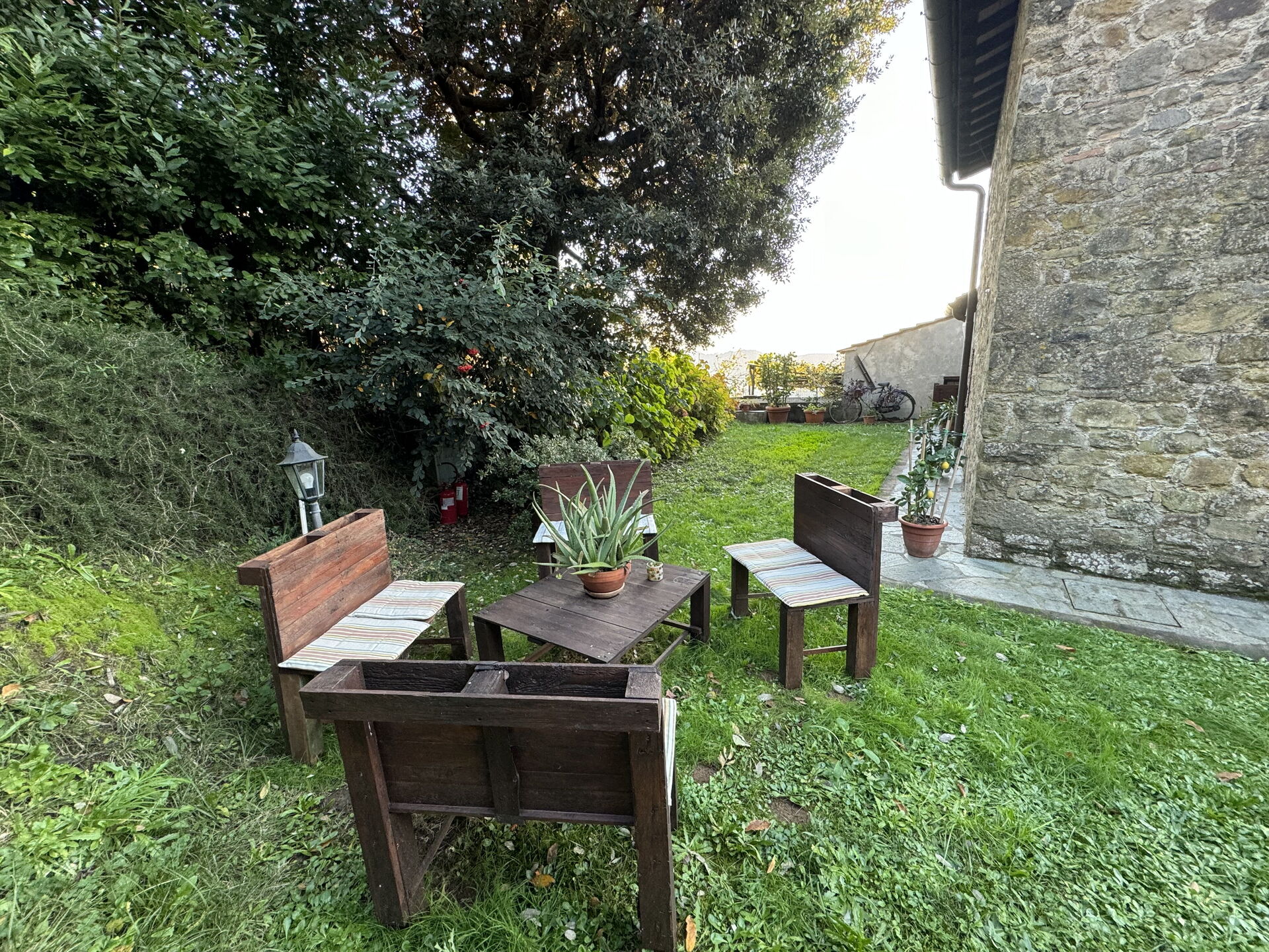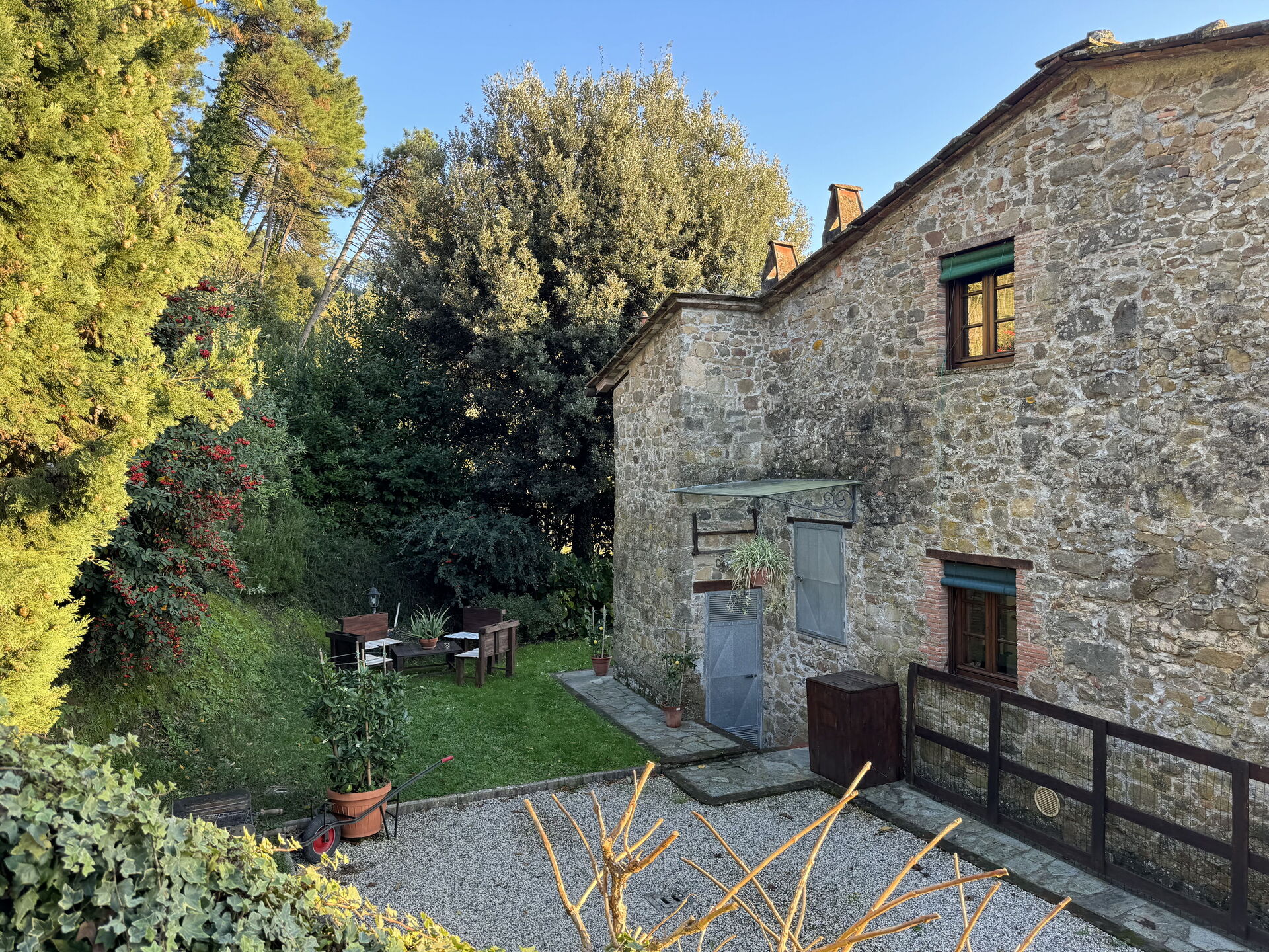 When you arrive at Batticapo di Ilaria you’ll find a beautiful clean well-maintained property with views of the hills ideal for a peaceful vacation in Tuscany. Regardless of how you spend your days - visiting museums, sightseeing, shopping or just driving in the countryside, when you arrive home you can unwind with your family and friends at the pool for a perfect ending to another day in Tuscany. Sharing a meal with friends and family is a big part of the Tuscan culture. Take advantage of the kitchen to prepare meals using local produce while on your holiday. The kitchen includes coffee machine, stove and refrigerator, as well as, plenty of tableware and cutlery for up to six people. Dine 'al fresco' like a real Tuscan, the fully furnished garden is the perfect setting to enjoy food, family and the lovely Tuscan weather.