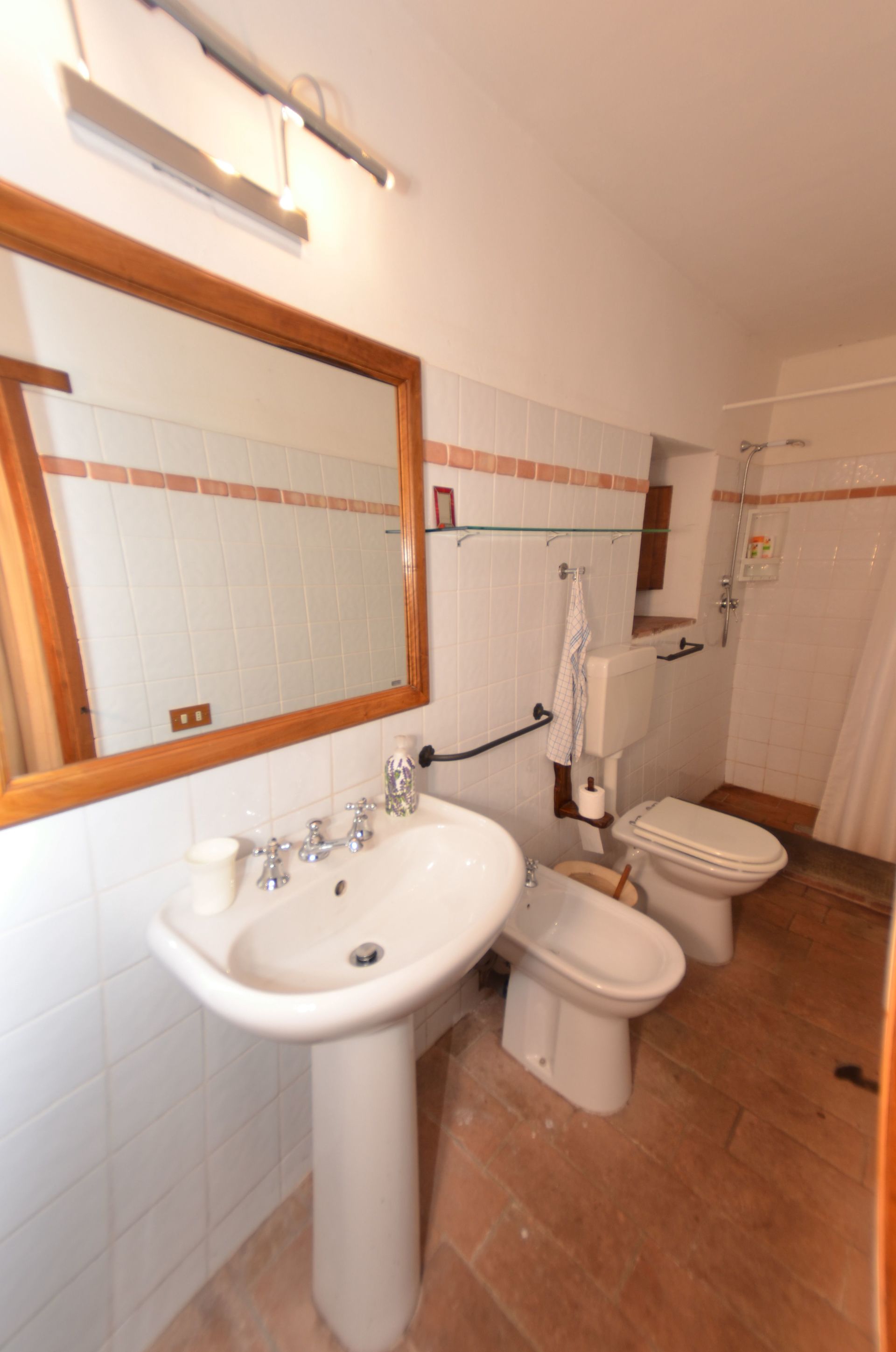 Bathroom: basin, toilet, bidet, shower, hairdryer.