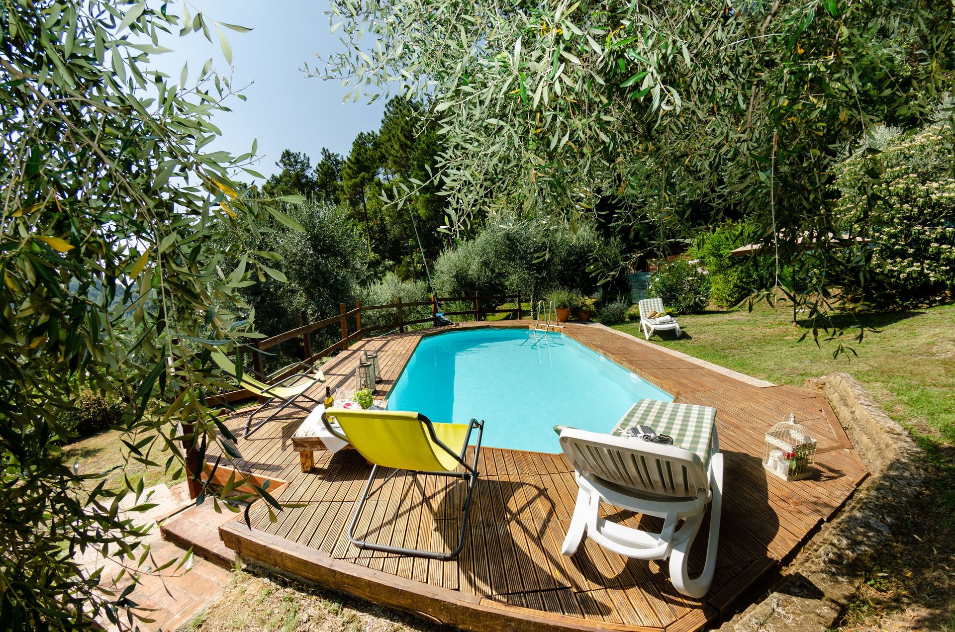 After arriving you will be greeted by the owner or manager where you’ll find a beautiful clean well-maintained property with views of the hills ideal for a relaxing holiday in Tuscany. For your enjoyment you will find a private pool where you can unwind while enjoying a nice cold beverage after a busy day of shopping. Sharing a meal with friends and family is a huge part of the Tuscan culture. Take advantage of the kitchen to prepare meals using local produce while on your vacation. The kitchen includes coffee machine, stove and refrigerator, as well as, plenty of tableware and cutlery for up to five people. Dine 'al fresco' like a real Tuscan, the fully furnished veranda is the perfect setting to enjoy food, family and the beautiful Tuscan weather.
