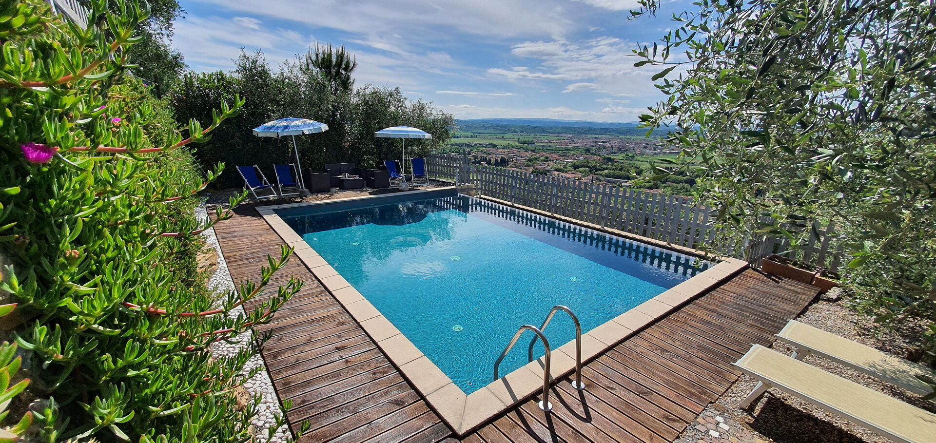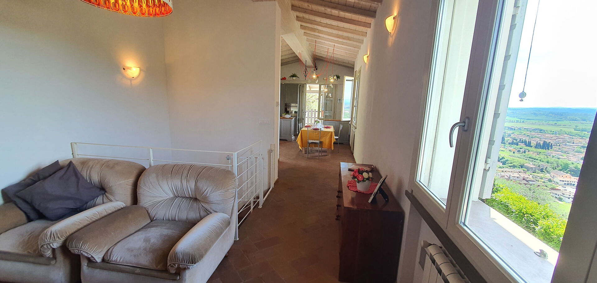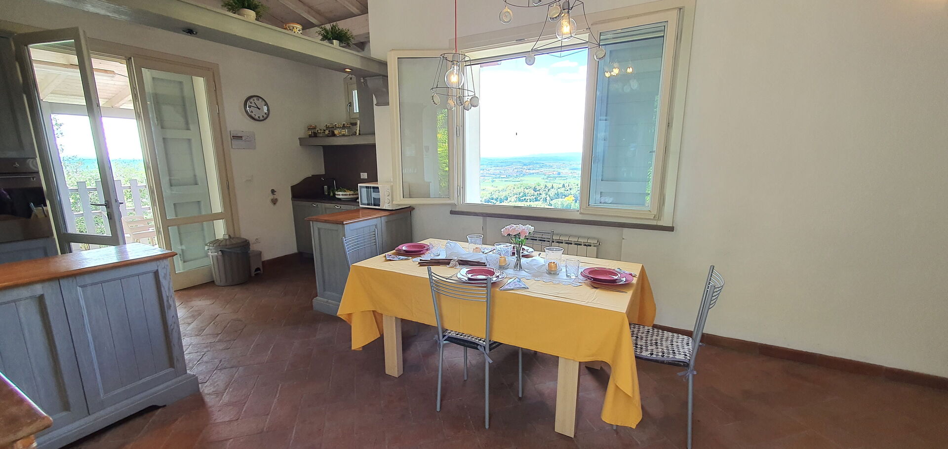 When you arrive at Podere San Martino you’ll find a lovely clean well-maintained property with views of the hills perfect for a peaceful holiday in Tuscany. Regardless of how you spend your days - sightseeing, shopping, visiting museums or just driving in the countryside, when you arrive home you can relax with your family and friends at the pool for a perfect ending to another day in Tuscany. Also available outside are a playground and barbecue grill. There is a kitchen including coffee machine, microwave, toaster, stove and refrigerator, as well as, plenty of tableware and cutlery for up to six people. If you prefer to dine 'al fresco', there is a fully furnished veranda where you can enjoy the weather while dining outdoors.