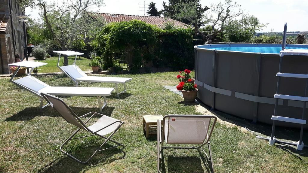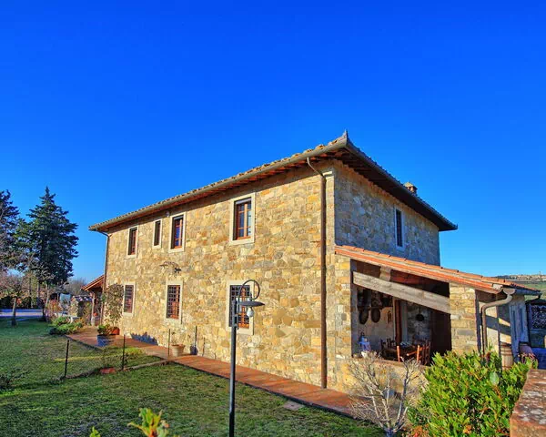 This house is part of an old farmhouse and is surrounded by a nice garden with a private swimming pool above ground (round shaped, large 5m). The interiors are furnished following the typical rural Tuscan style.