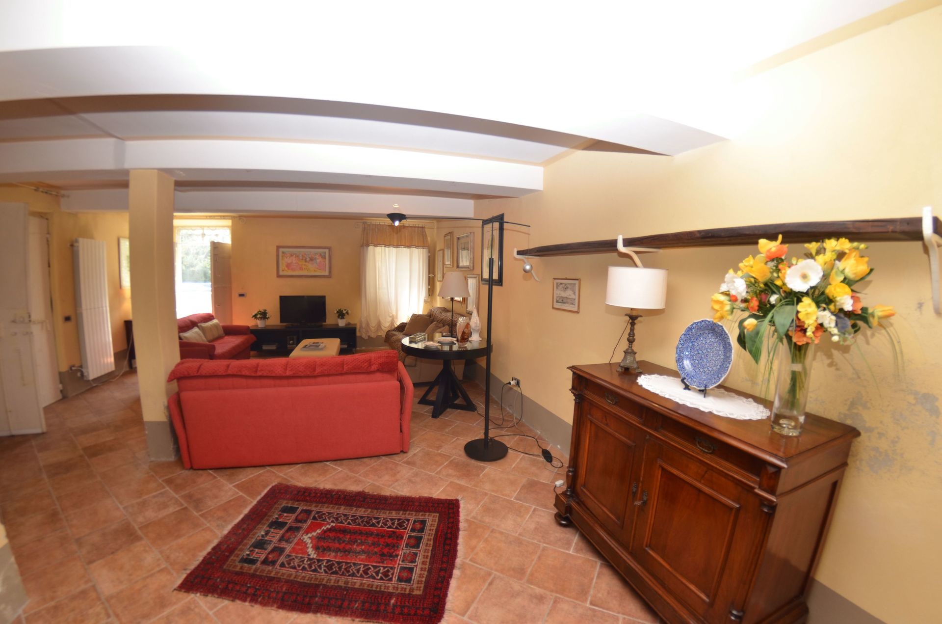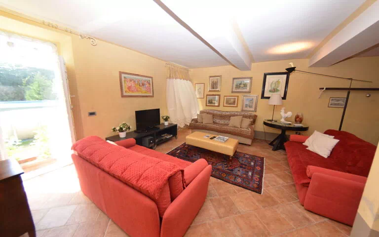 Living room 1: two sofas (people: 3), two armchairs, fireplace, sofa bed double (length: 1.9m, width: 1.6m), WIFI internet, exit to the garden.
