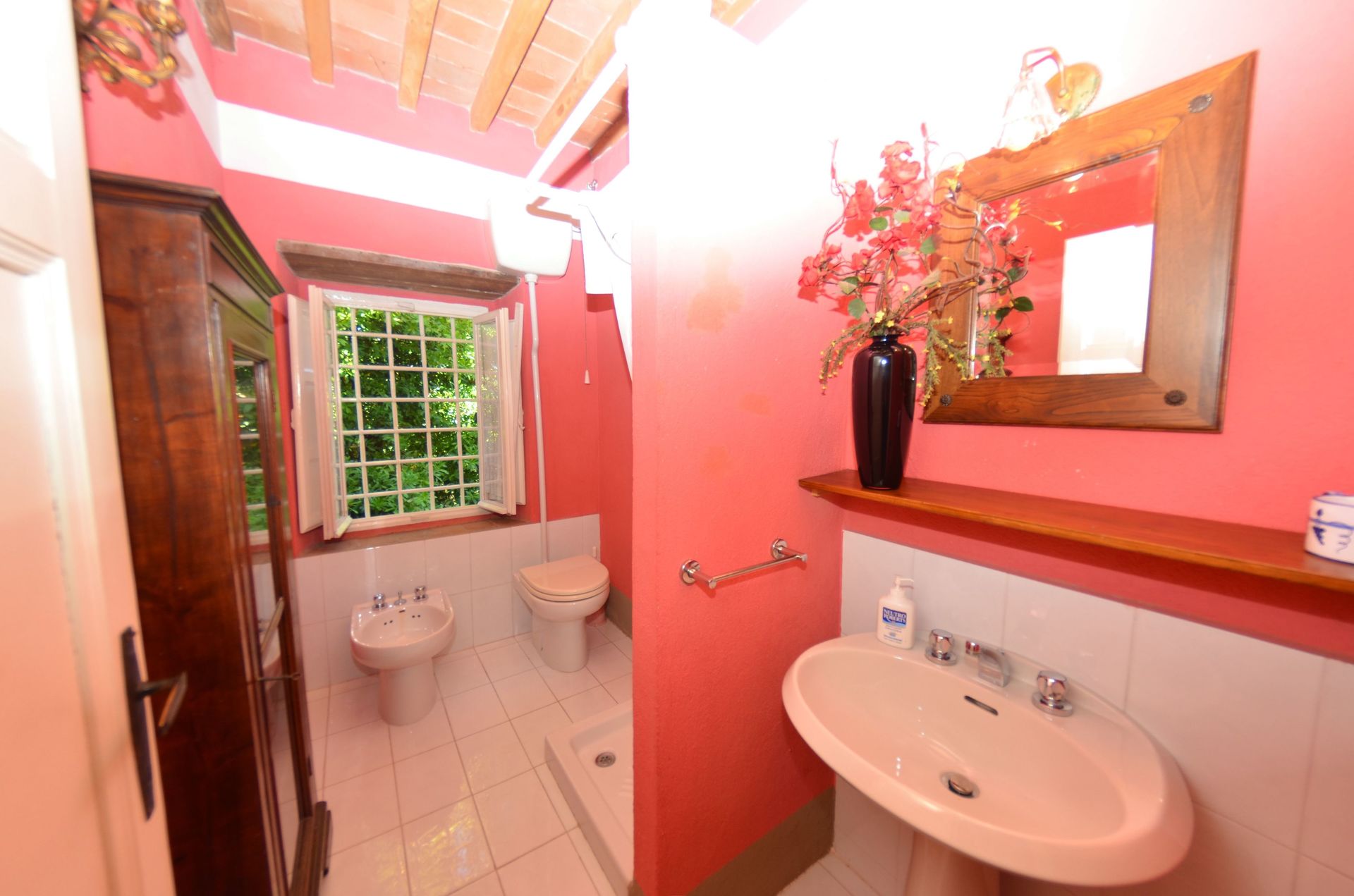 Bathroom 2: basin, toilet, bidet, shower.