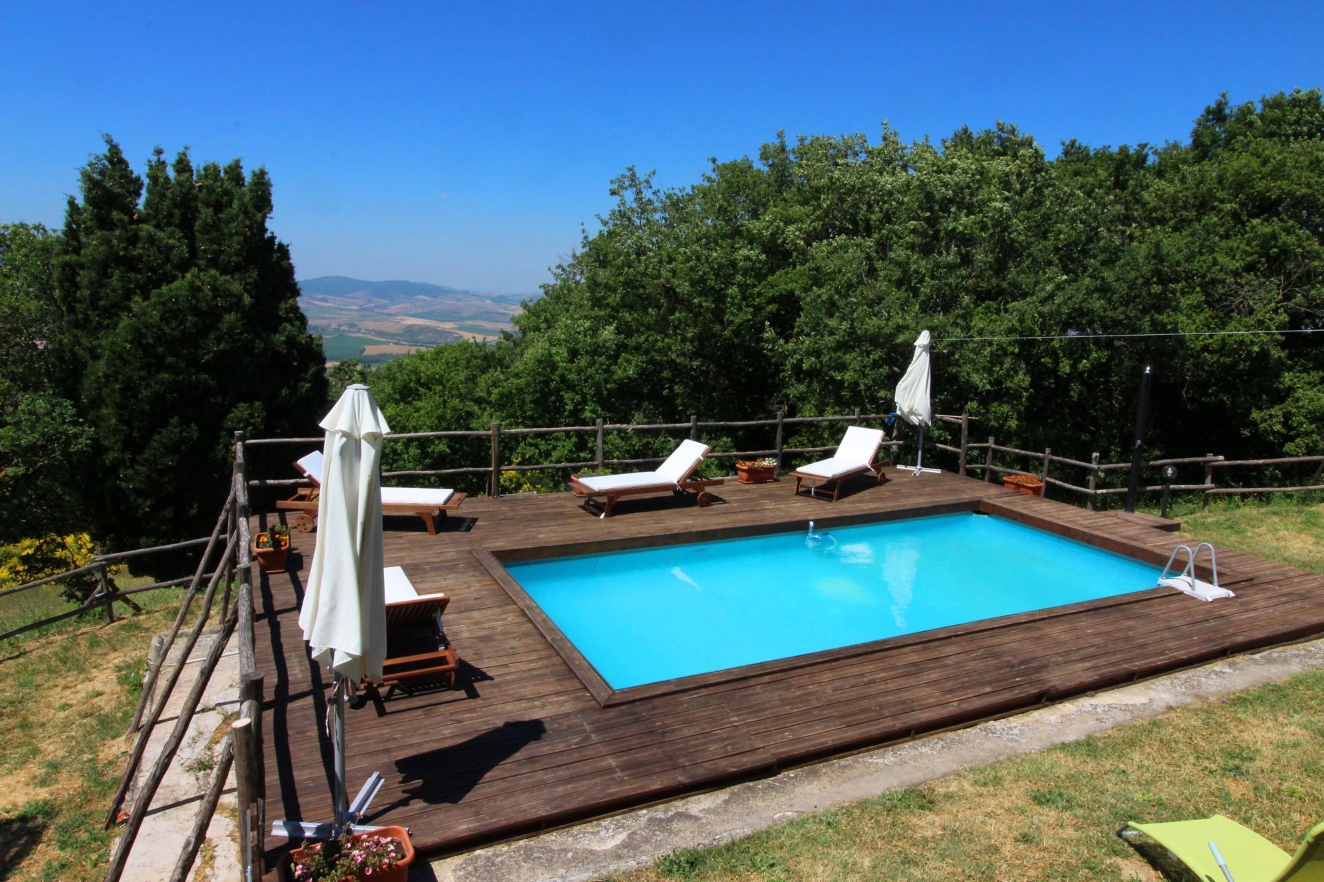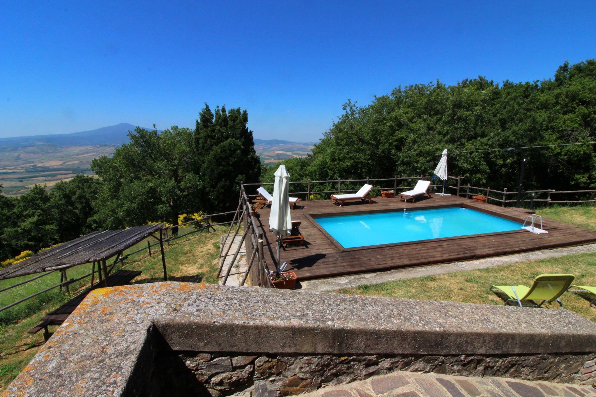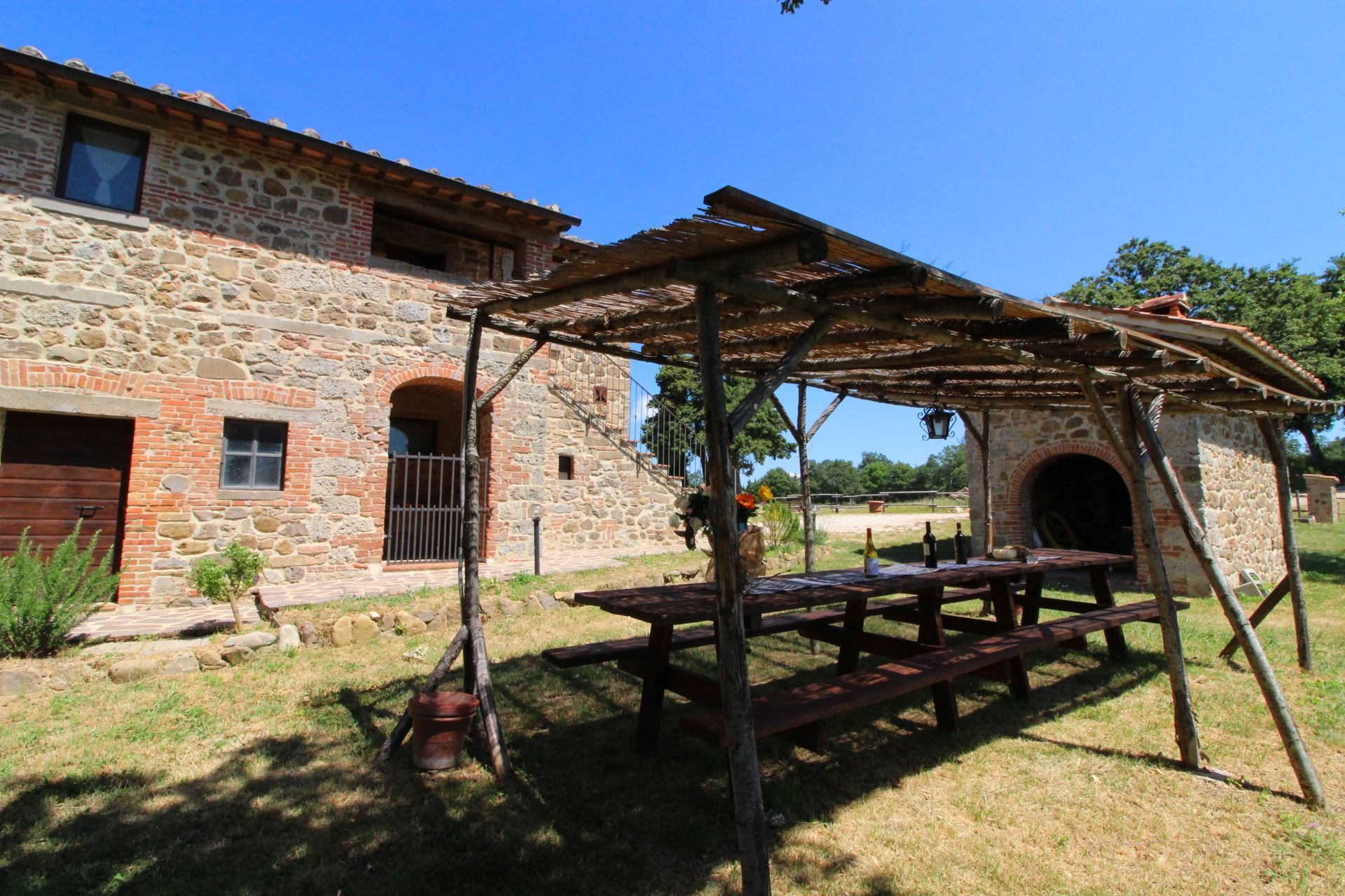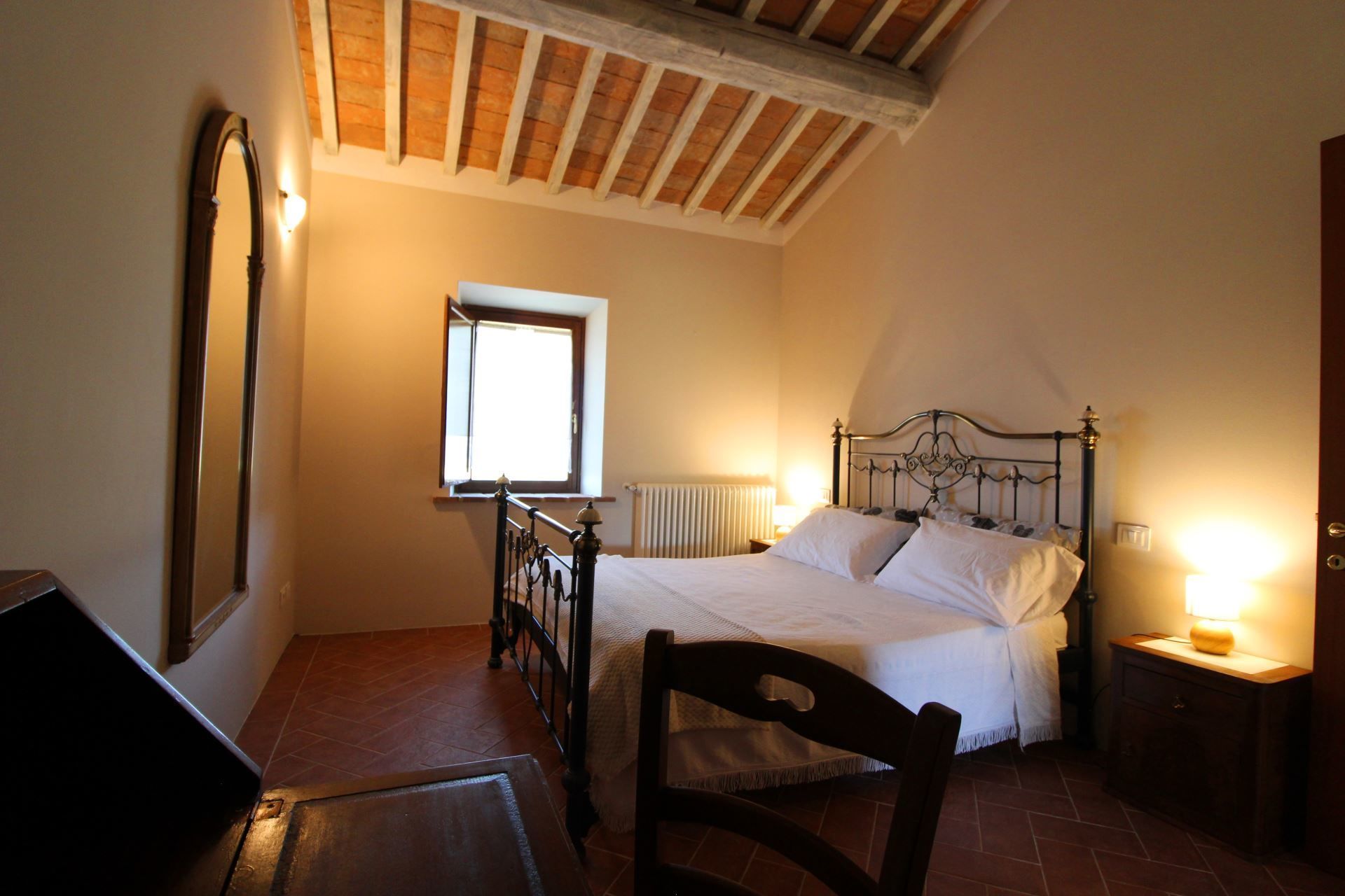 A typical Tuscan farmhouse. Podere Palazzone, in stone, with terracotta floors and chestnut beams, is divided into 3 independent units not connected to each other, in the apartment on the ground floor there is a bathroom completely suitable for disabled people. Outside there is a large unspoilt area, a swimming pool size 8x4 m. (depth 1.30 m.), which, together with Wi-Fi access, dishwasher, washing machine and all the necessary comforts, will allow you to spend a completely relaxing holiday. In less than an hour you can visit the villages of Valdichiana and Valdorcia, such as Chiusi, Montepulciano, Pienza, Montalcino, San Quirico d'Orcia and the spa areas of Chianciano Terme, San Casciano dei Bagni, Bagno Vignoni and Bagni San Filippo.