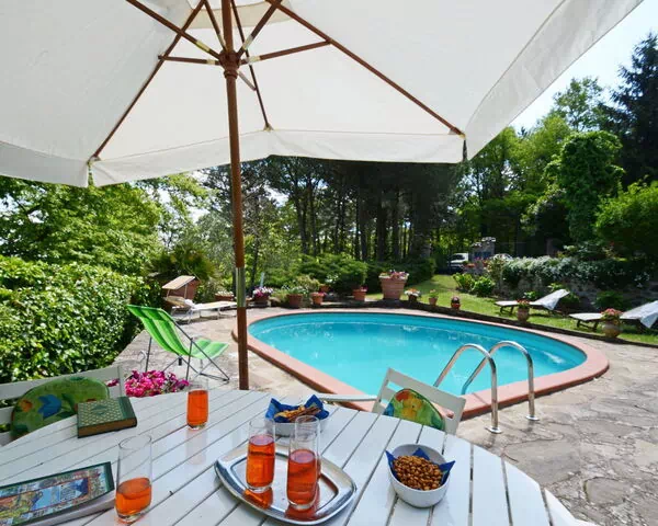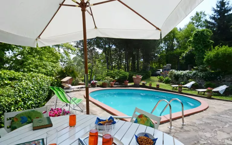 Piegaro, Italy is home to the beautiful and cozy villa "La Goccia," a detached property surrounded by trees at an elevation of 600 meters above sea level. This charming vacation rental boasts a private park spanning 1 hectare, a fenced and beautifully landscaped garden ideal for relaxation, a swimming pool with an unconventional shape and seasonal availability from May 15th to September 26th, an outdoor shower, a patio area, garden furniture, a barbecue area, and parking facilities at the house. The villa also offers Internet WiFi, making it perfect for your holiday rental needs.