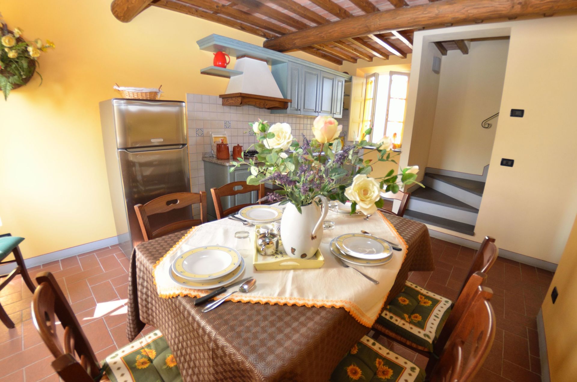 When you arrive at Alda you’ll find a lovely clean well-maintained property perfect for a peaceful vacation in Tuscany. Regardless of how you spend your days - visiting museums, shopping, sightseeing or just driving in the countryside, when you arrive home you can relax with your family and friends for a perfect ending to another day in Tuscany. A real time-saver is having a washing machine on the property that is available for the guests to use. Outdoors you will also find a playground, barbecue grill and patio. There is a kitchen including coffee machine, toaster, stove and refrigerator, as well as, plenty of tableware and cutlery for up to five people. If you prefer to dine 'al fresco', there is a fully furnished patio where you can enjoy the weather while dining outdoors.