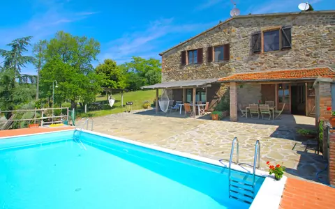 Immerse yourself in the heart of Tuscany with this charming vacation rental nestled amongst olive groves and vineyards. "La Casetta," a beautifully renovated rustic country house spread across two stories, offers a serene retreat surrounded by vineyards. The property boasts two lovely private terraces, gazebos with hammocks, and a superb swimming pool just meters from the house, allowing you to relax and unwind. Enjoy the convenience of internet Wifi, ample parking, and a private yard with a garden and orchard.