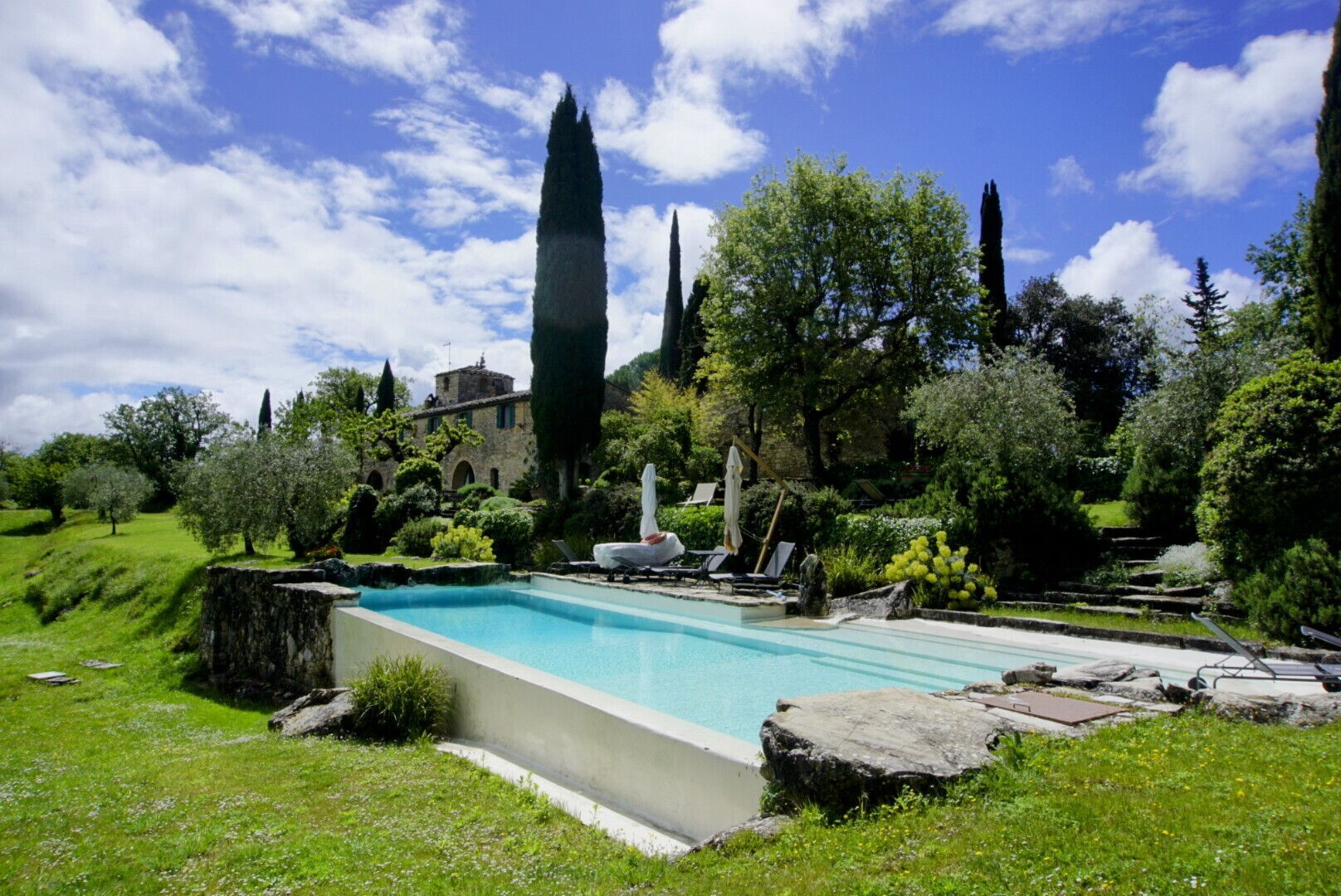 From its secluded position the views are absolutely stunning, with all the windows framing a picture of the lovely Chianti countryside at its best. There is a pathway leading to the beautiful swimming pool with overflow effect, in a particularly panoramic position. The pool has a large shallow end for children. To the rear of the property, is a converted barn where the housekeeper lives.