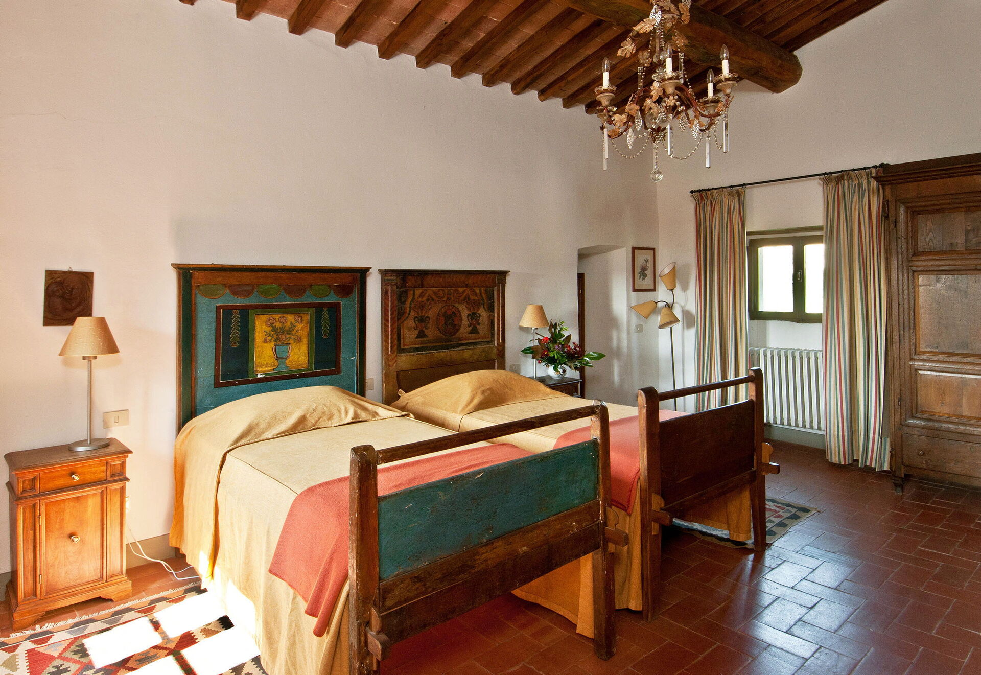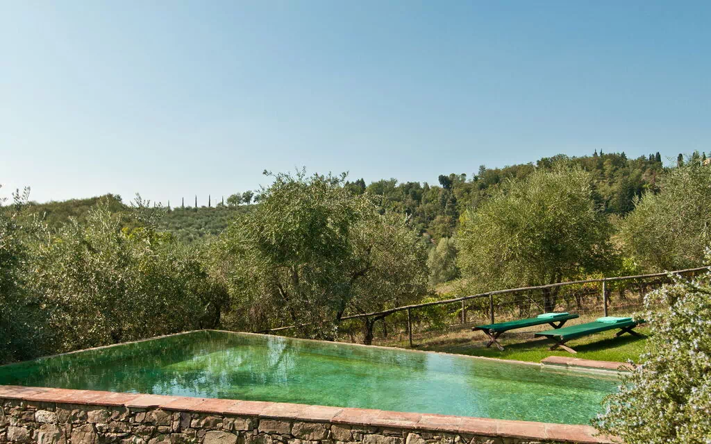 This beautiful farmhouse is located in a very quiet and secluded position on the Castello di Volpaia estate, where we have successfully been renting two other properties, La Pozza and Il Casetto for many years. Guests can enjoy incredible views from the covered terrace, which is furnished for outdoor eating and is also very practical for families as it overlooks the pool, allowing parents to relax while keeping an eye on the pool area. The fortified hamlet of Volpaia offers two nice restaurants, one of which owned by the estate. The English speaking estate staff can organize cooking lessons, visits to the wine cellars and will be glad to assist guests during their stay.