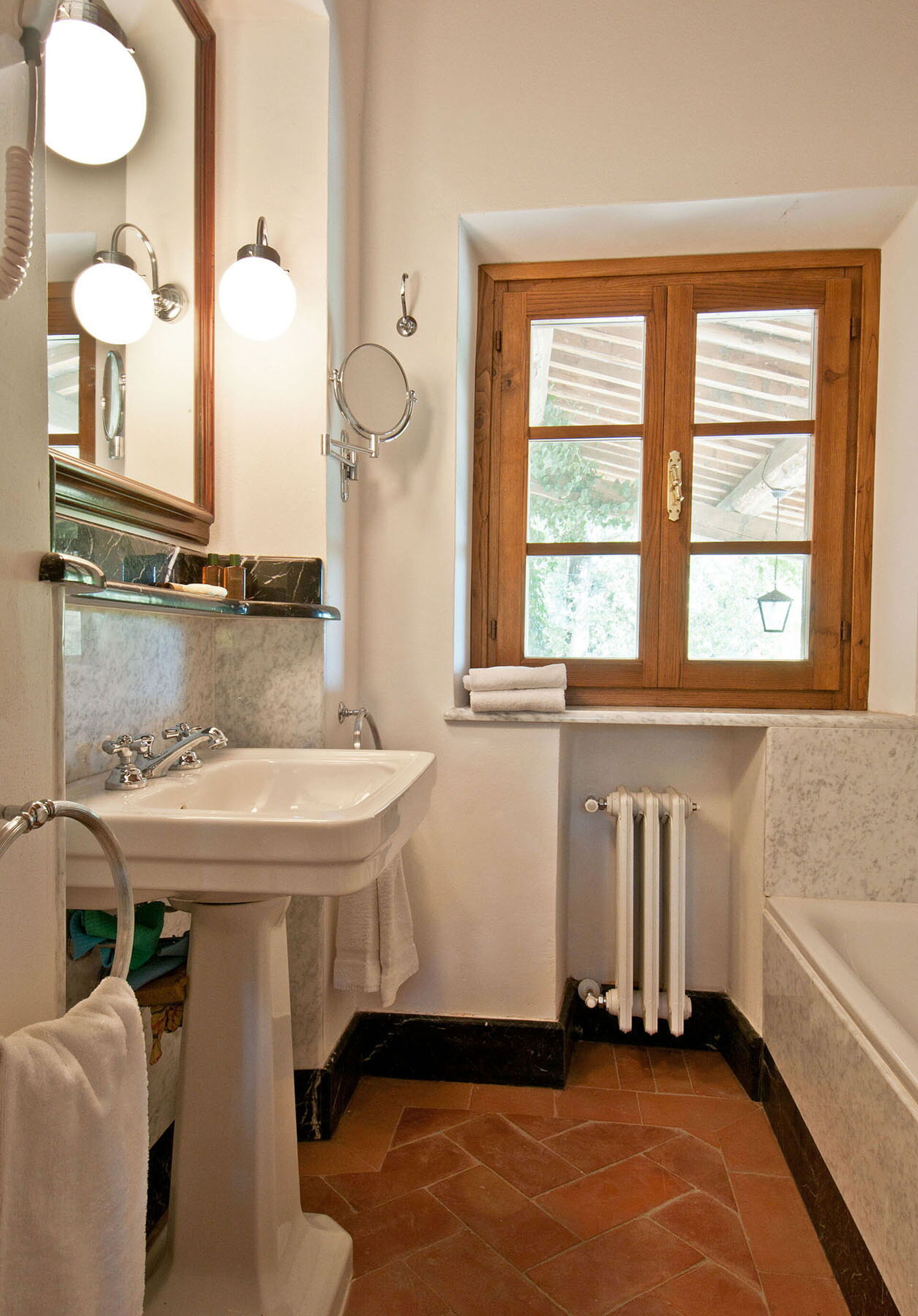 Bedroom + Ensuite Bathroom 1: two single beds, WIFI internet, mosquito net, double basin, toilet, bidet, bathtub, shower, hairdryer, exit to the garden.