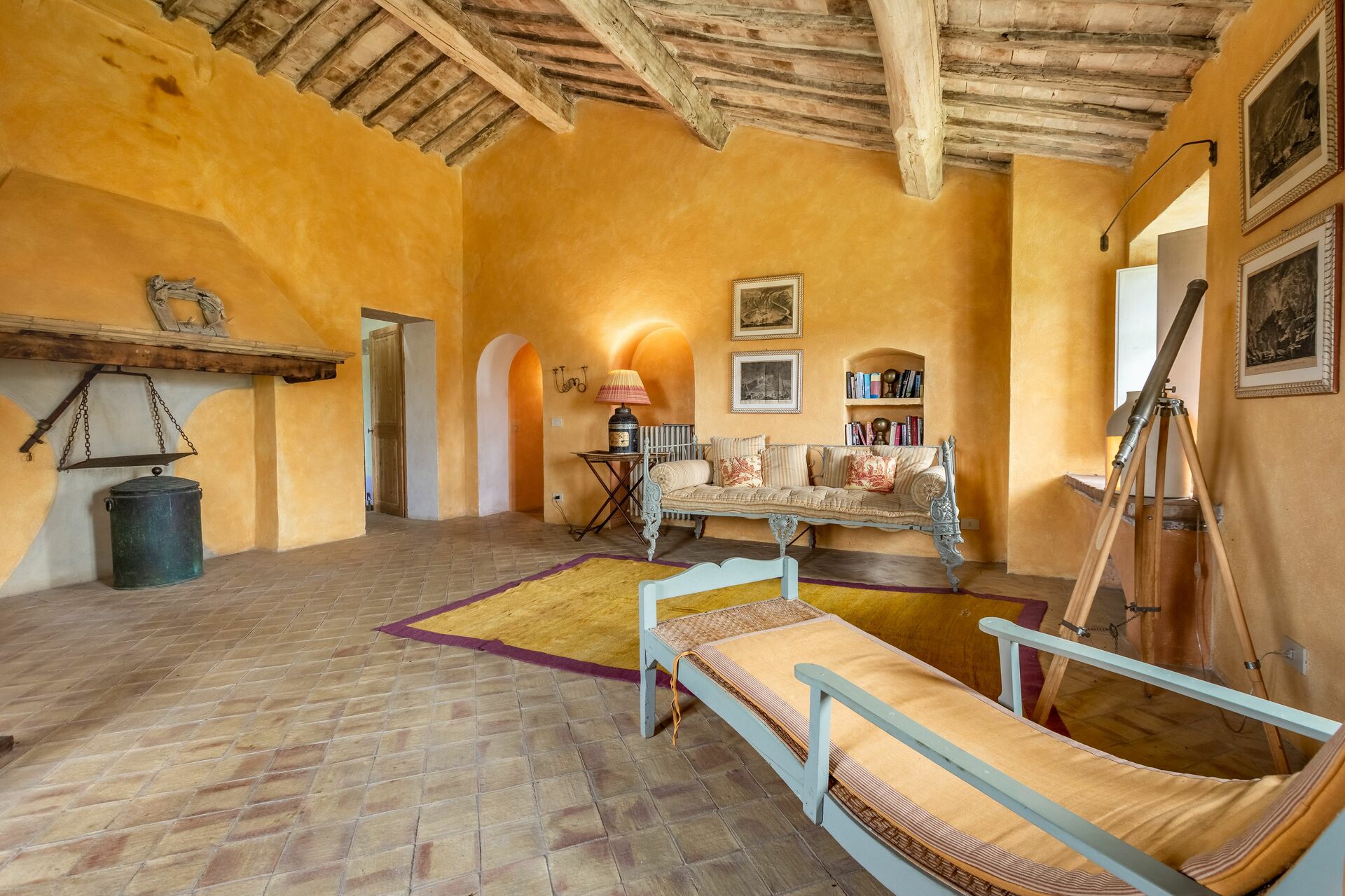 This exceptionally beautiful property is located in a very quiet and spectacular position, just a few kilometres away from the lovely village of Montalcino. The property comprises both a large Tuscan stone-built farmhouse and a small guest house.