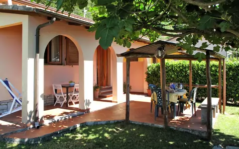 The vacation home offers a range of amenities to make your stay comfortable and convenient. Step outside and enjoy the fresh air on the terrace, which provides a roofed area to relax and take in the magnificent distant view of the sea, forest, and Riviera della Versilia. The patio and porch offer additional outdoor spaces to enjoy. The bathroom is equipped with a shower and toilet, and the entire house features gas heating. Other amenities include a washing machine, children's high chair, baby cot for up to 2-year-olds, a hairdryer, and free WiFi. Reserved parking is available at the house, and one pet or dog is allowed.