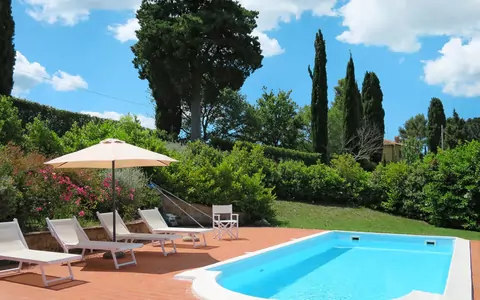 The outdoor spaces of House "Santa Enerichetta" are a true highlight of the property, inviting you to immerse yourself in the serene Tuscan landscape. The beautifully maintained garden, with its rich greenery and expansive meadow, creates a naturally peaceful environment perfect for leisurely strolls or quiet moments in the open air. The private swimming pool, measuring 8 x 4 metres and open seasonally from 15 May to 16 October, serves as a refreshing centrepiece of the outdoor area during the summer season. Surrounding the pool, sun loungers are thoughtfully arranged, allowing you to bask in the warm Italian sunshine and enjoy long, relaxing afternoons in complete comfort.