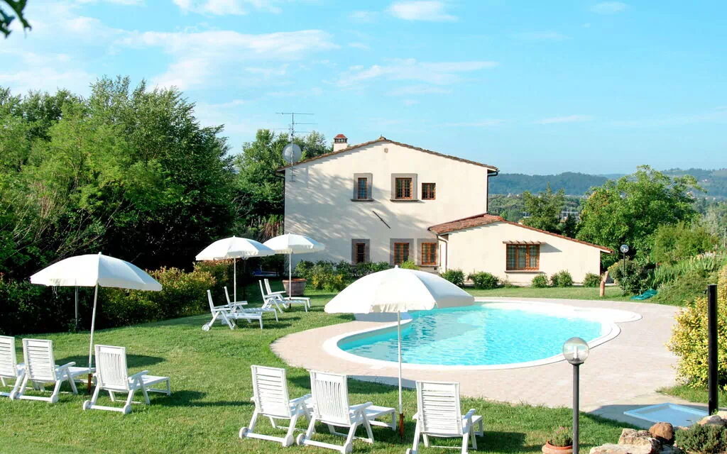 Beautiful country house "Frantoio delle Grazie", 2 storeys, from the 16th century, surrounded by trees and fields. 6 apartments in the residence. 6 km from the centre of Firenze, 2 km from the centre of Settignano. For shared use: property 100'000 m2, well-kept garden with lawn and trees, swimming pool (11 x 7 m, depth 120 - 150 cm, seasonal availability: 15.May. - 30.Sep.) with salt-electrolysis pool-cleaning system. Unconventional pool shape. Outdoor shower, arbour, garden furniture, barbecue. In the house: reception, washing machine (for shared use, extra). 350 m long motor access (via unmade road). Parking on the premises. Supermarket 1 km, bus stop 1 km, railway station "Firenze" 7 km. Please note: the owner lives on the same property.