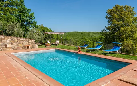 Experience rustic living in the countryside at "La Casina," a cozy two-story, terraced cottage nestled amidst trees and fields in the hamlet of Montegusciani, Montieri, Italy. This charming vacation rental offers a private, fully fenced 350-square-meter property with a terraced garden, meadow, and a stunning 8x4-meter swimming pool with depths ranging from 140 to 180 centimeters. Enjoy the convenience of an outdoor shower, WiFi internet, parking for up to three cars, and amenities like a washing machine during your stay.