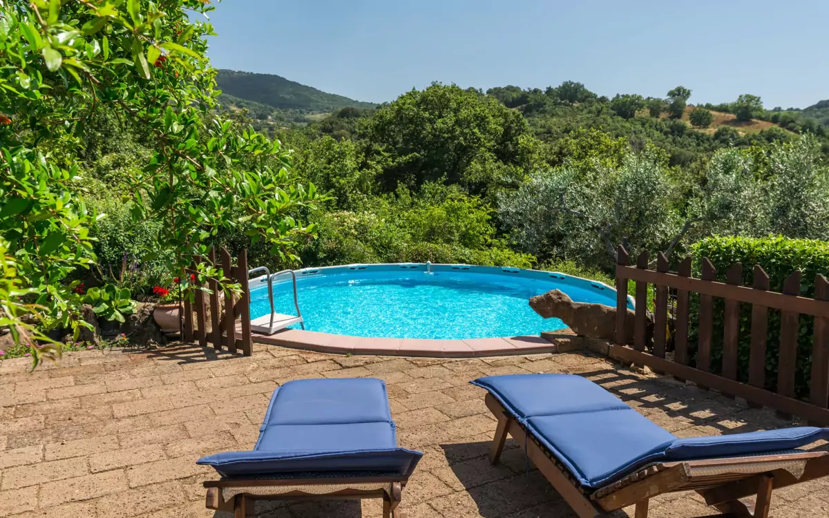 Nestled in the unspoiled countryside of Scansano, Italy, "Bardi I" is a charming and rustic holiday rental that offers an exceptional retreat for those seeking tranquility and a deep connection with nature. Positioned below the small village of Polveraia, just 1 km from its center and 14 km from the heart of Scansano, this secluded property sits within a private grounds of 700 m2, beautifully landscaped with a wildlife garden and mature trees that create a serene and immersive natural setting. The yard surrounding the property provides ample space to relax, explore, and enjoy the peaceful rural atmosphere. Guests also benefit from the convenience of roofed parking available directly at the house, ensuring a comfortable and secure stay from arrival to departure. An above-ground swimming pool with a diameter of 5 m adds a refreshing recreational dimension to the property, inviting guests to unwind during the warmer months.