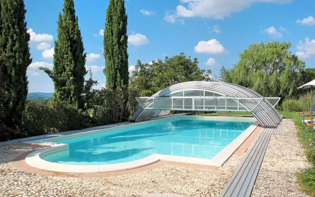 Beautiful country house "Casa Ingrid", detached, surrounded by fields. 15 km from the centre of Marsciano, 4 km from the centre of San Venanzo, 48 km from the centre of Perugia, in the countryside. Private: property 2 ha with lawn and wildlife garden, lawn for sunbathing, swimming pool (14 x 7 m, depth 120 - 250 cm, seasonal availability: 01.Jan. - 31.Dec.). Outdoor shower, pool maintenance by the owner/gardener. In the house: sauna (extra). Fitness room. 2.2 km long motor access (via unmade road). Parking on the premises. Shop 4 km. Local sale of farm products. Pool with mobile roofing (roofed until end of May/beginning of September, otherwise open), the roofing may only be operated by the owner.