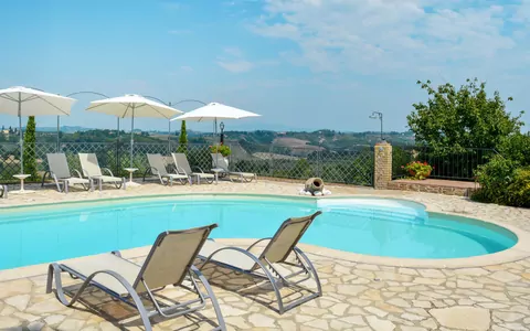 Nestled in the heart of Tuscany, Italy, House "L'Ulivo" is an exceptional holiday rental set on a sprawling 16,000 square meter property, located just 3 kilometers from the center of Castelfiorentino. This stunning residence offers an ideal combination of tranquility and accessibility, providing guests with a comfortable and memorable stay in one of Italy's most celebrated regions. The property features a generous yard filled with lush plants and a charming orchard, creating a serene and picturesque environment throughout your stay. A large shared swimming pool measuring 14 x 4 meters is available seasonally, offering a refreshing retreat during the warmer months. Reliable Internet WiFi keeps you connected whenever needed, while roofed parking on the premises ensures your vehicle is safely accommodated at all times.