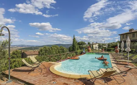 Resort "Borgo in Chianni" is a relaxing vacation rental located just one kilometer from the charming village of Chianni in the beautiful Tuscan countryside. The residence features eight apartments and offers a range of amenities to ensure a comfortable and enjoyable stay. You can enjoy the well-kept garden spanning 2 hectares, a stunning seasonal swimming pool measuring 10 x 4 meters with a depth of 110 cm, an outdoor shower, and on-site parking facilities. The property is accessible via a stepped path with 12 steps leading up to the house and provides internet wifi access.