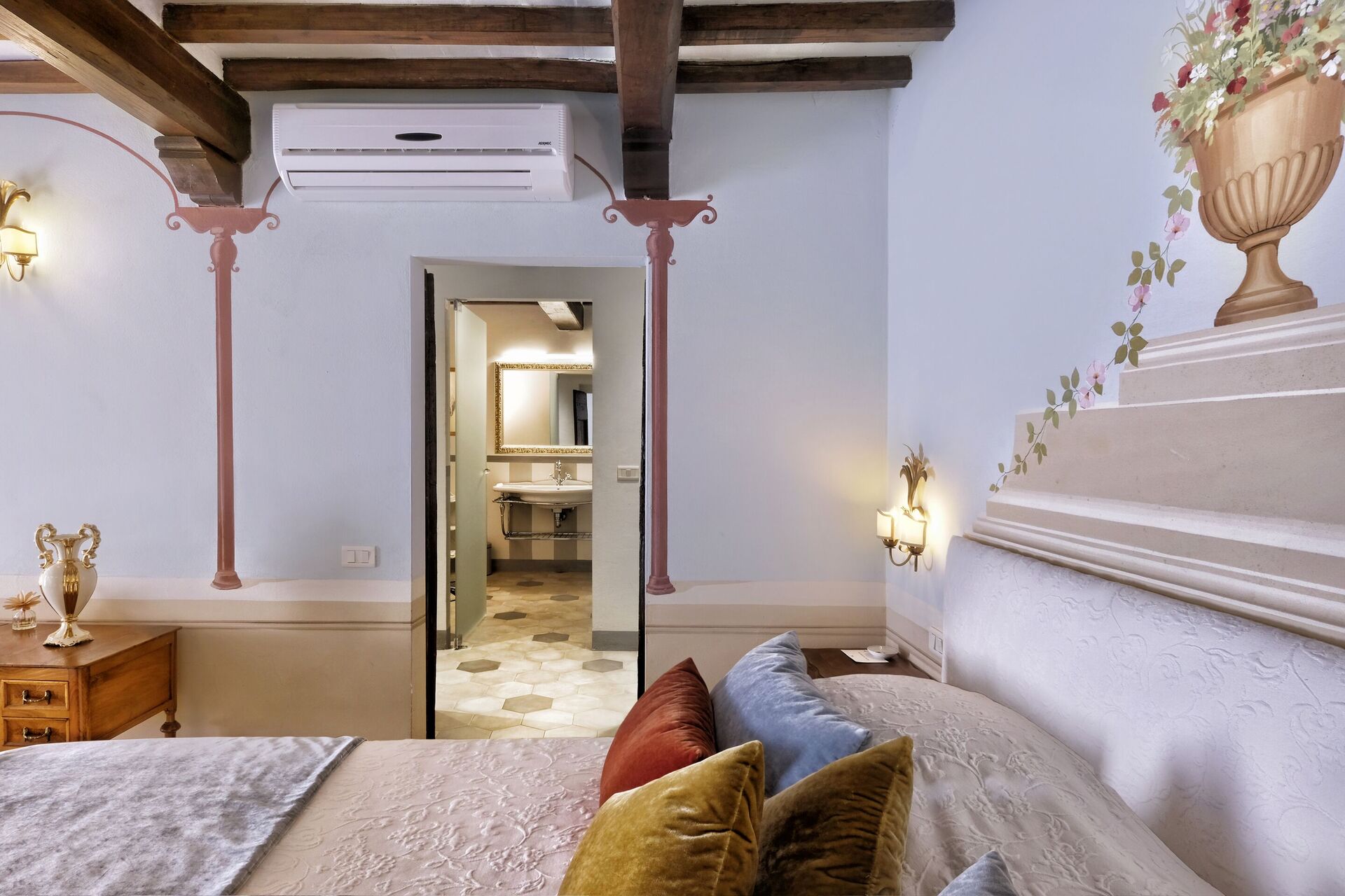 Bedroom + Ensuite Bathroom: double bed, WIFI internet, air conditioning, television, safe, basin, toilet, bidet, shower, hairdryer.