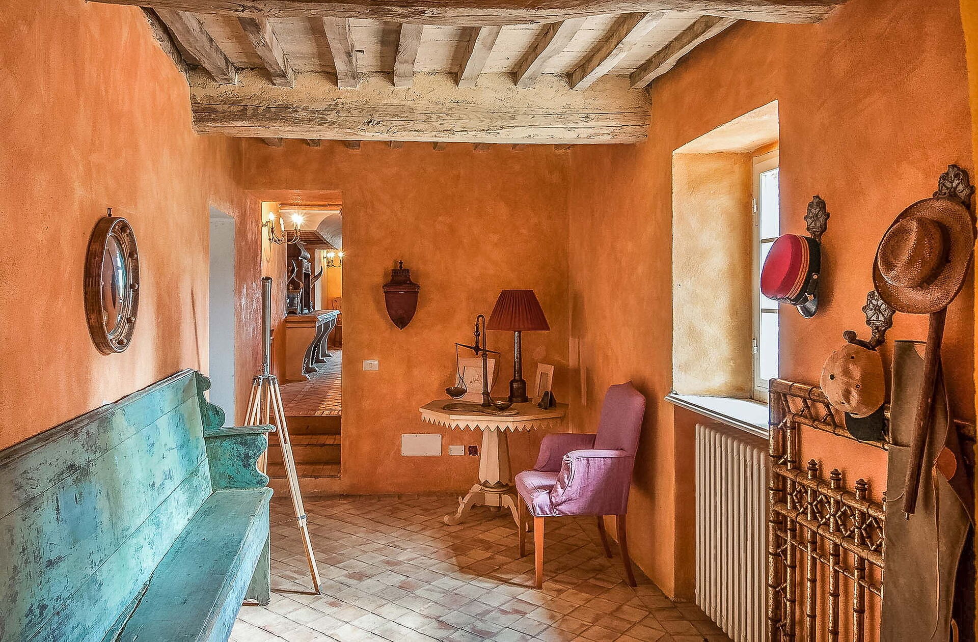 The views from the house are outstanding taking in the Val d’Orcia and Crete Senesi, considered by many as the most beautiful areas of Tuscany. The owner a renowned Italian Architect and Interior Designer restored the villa in total respect to the Tuscan tradition and furnished it with an impressive combination of furniture personally designed and some antiques ones. The property comprises the main Tuscan stone-built farmhouse and a bedroom with en-suite bathroom in the guesthouse. Other bedrooms with en-suite bathroom can be rented at extra cost sleeping up to 18 people. Lavacchio has been restored and furnished to high standard all the first floor bedrooms have air-conditioning and two other portable units are available on request.