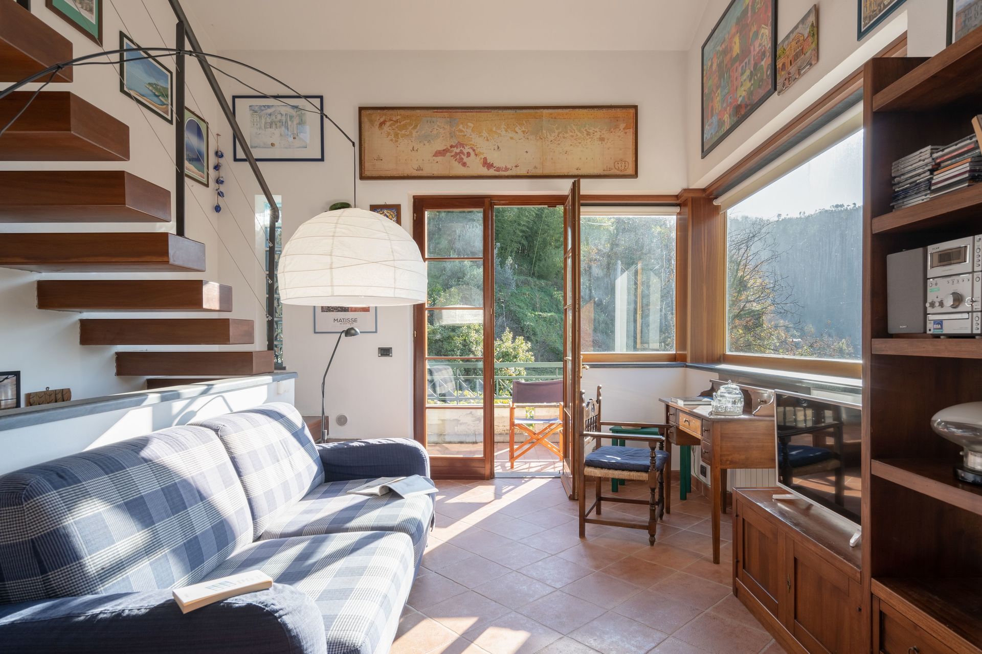 The property has two entrances, one from the highest point, convenient to reach the house more easily, equipped with a cable car to carry suitcases and shopping, another entrance from the lowest point, near the town, where you will find room for two cars.