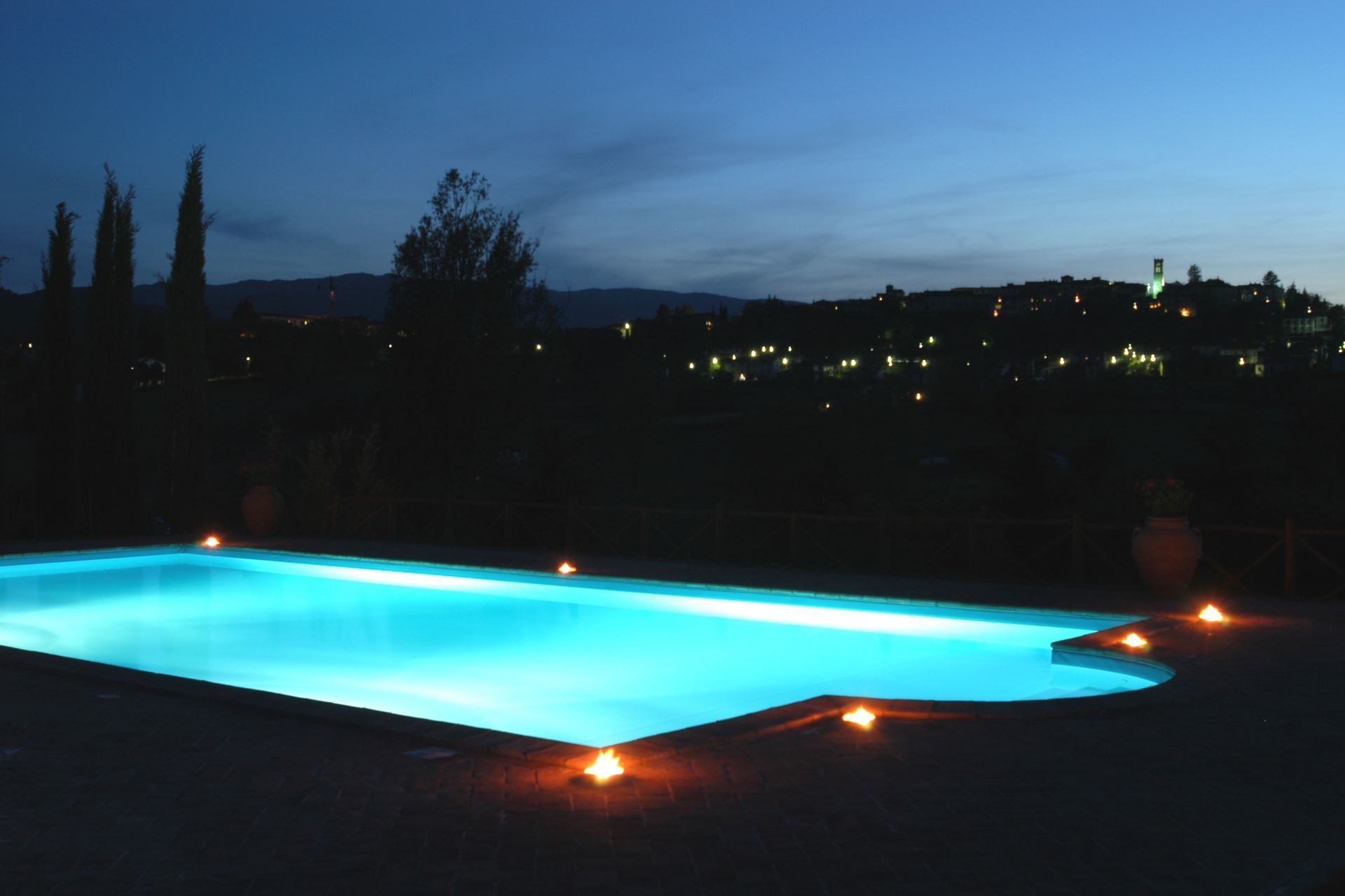 The panoramic swimming pool ( size mt 7x14 - depth mt 1,20-1,60 - open from 01st May to 30th September) the beautiful equipped solarium and 6-seater Jacuzzi offer a view of the ancient village of Bibbiena, perched on the top of the hill. Covered parking and fully fenced property.