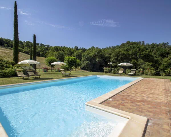 It is important to note that there is no internal connecting door between the separated properties that form Podere. This detail should be taken into consideration when planning your stay, particularly for larger groups who may be distributed across the different sections of the villa. The baby cot provided is suitable for children up to 2 years old, and the children's high chair is available upon request or as part of the standard provision. The outdoor terrace, measuring 40 m2, is furnished and equipped with a barbecue, making it an ideal space for al fresco dining and relaxation while enjoying the panoramic countryside views.