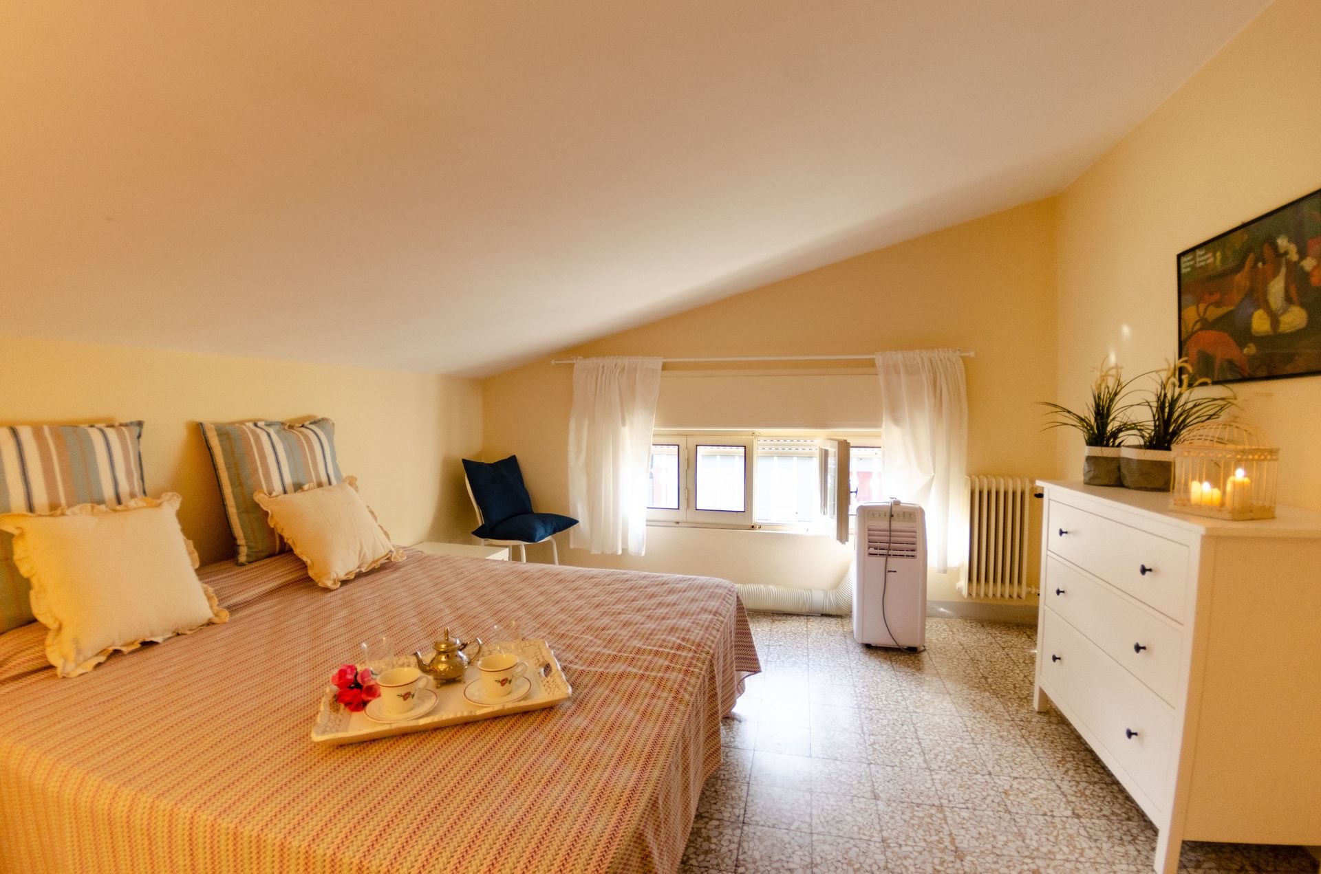 Bedroom 1: double bed, air conditioning, exit to the balcony.