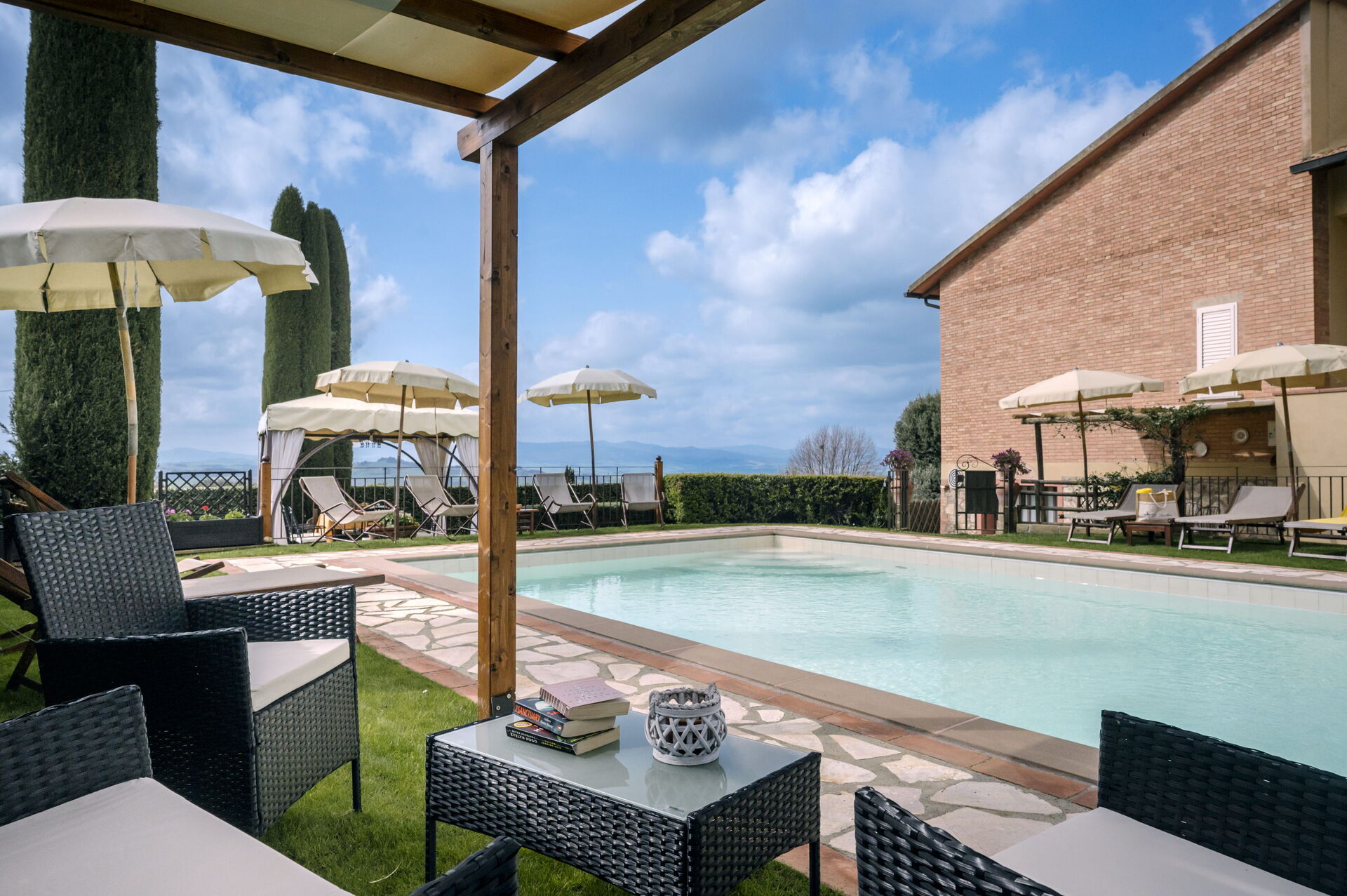 After arriving you will be welcomed by the owner or manager where you’ll find a beautiful clean well-maintained property ideal for a splendid vacation in Tuscany. Regardless of how you spend your days - shopping, visiting museums, sightseeing or just driving in the countryside, when you arrive home you can relax with your family and friends at the pool for a perfect ending to another day in Tuscany. For your pleasure, on the grounds there is a barbecue grill and patio. Sharing a meal with friends and family is a huge part of the Tuscan culture. Take advantage of the well-equipped kitchen to prepare meals using local produce while on your vacation. The kitchen includes coffee machine, microwave, toaster and refrigerator, as well as, plenty of tableware and cutlery for up to eight people. Dine 'al fresco' like a real Tuscan, the fully furnished balcony is the ideal setting to enjoy food, family and the lovely Tuscan weather.