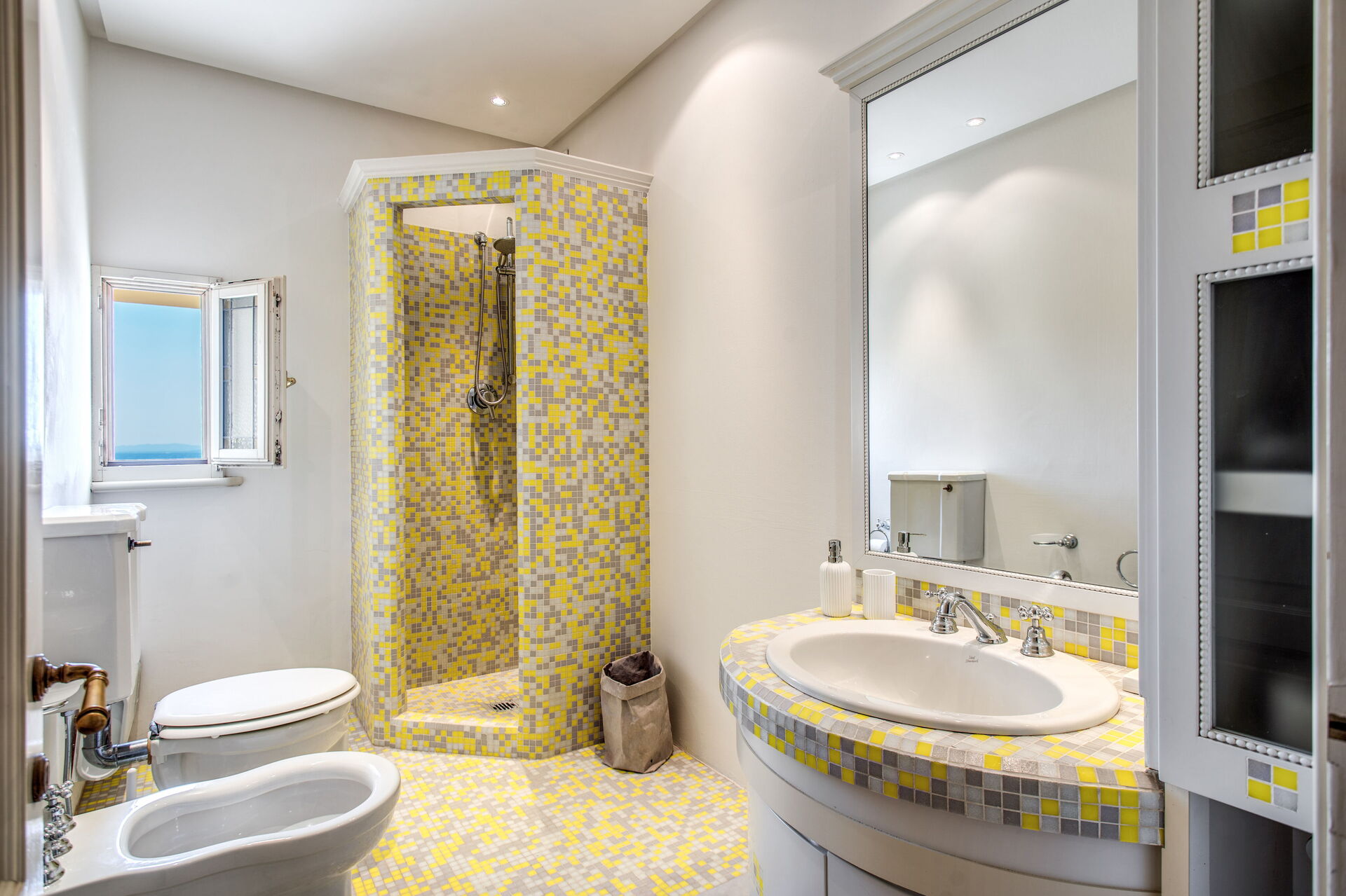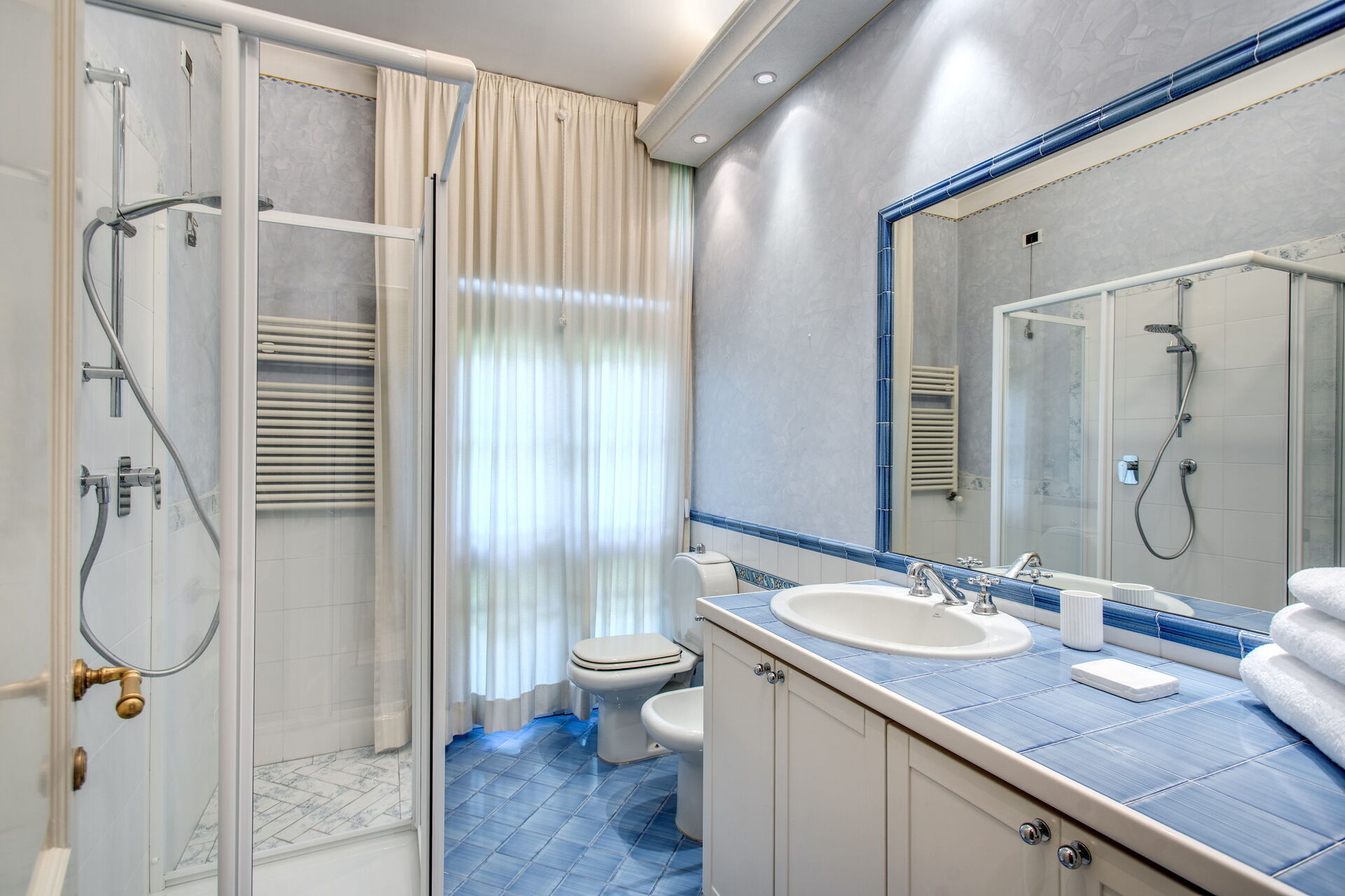 Bathroom 2 (9 m2): basin, bidet, shower, hairdryer.