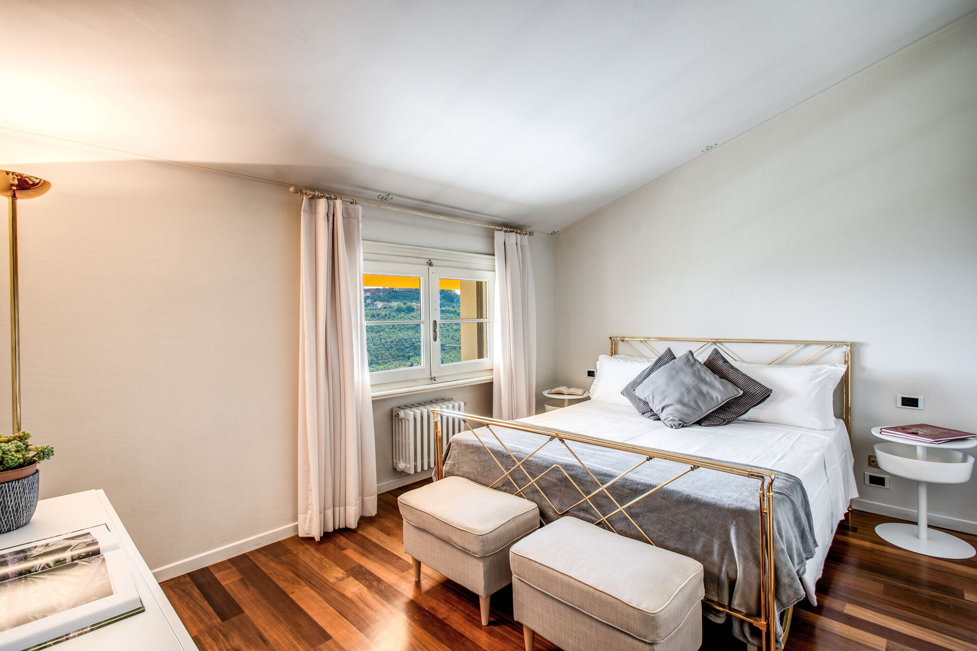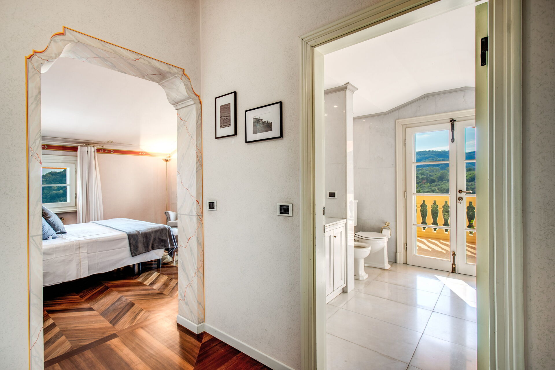 Bedroom + Ensuite Bathroom 3 (35 m2): double bed (length: 1.8m, width: 1.8m), WIFI internet, air conditioning, armchair, whirlpool bathtub, double basin, toilet, bidet, hairdryer, exit to the terrace.