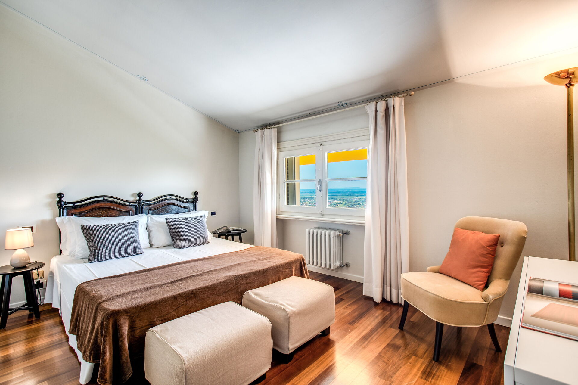 Bedroom + Ensuite Bathroom (60 m2): king size bed (length: 2.1m, width: 2m), WIFI internet, air conditioning, satellite tv, armchair, working desk, basin, toilet, bidet, shower, hairdryer, exit to the patio.
