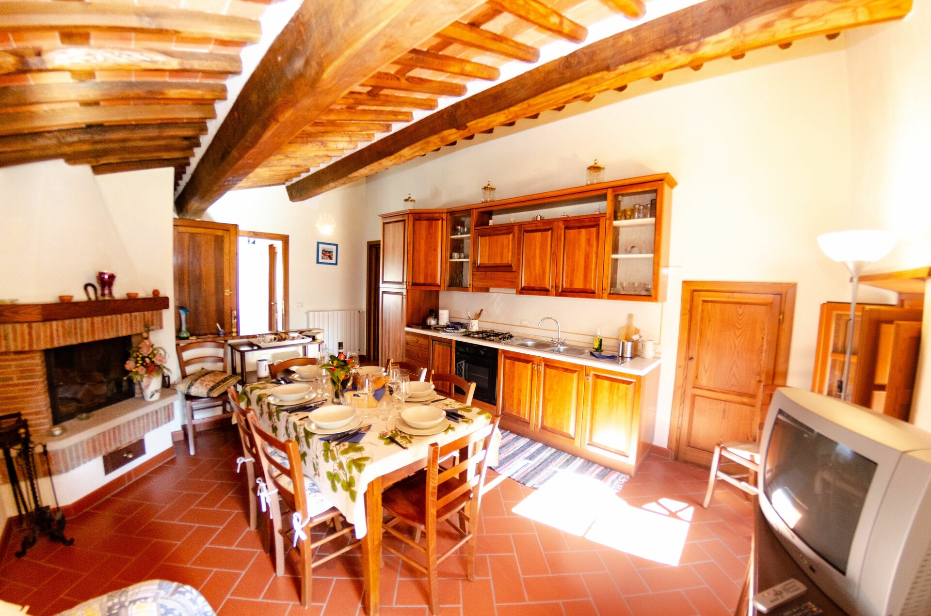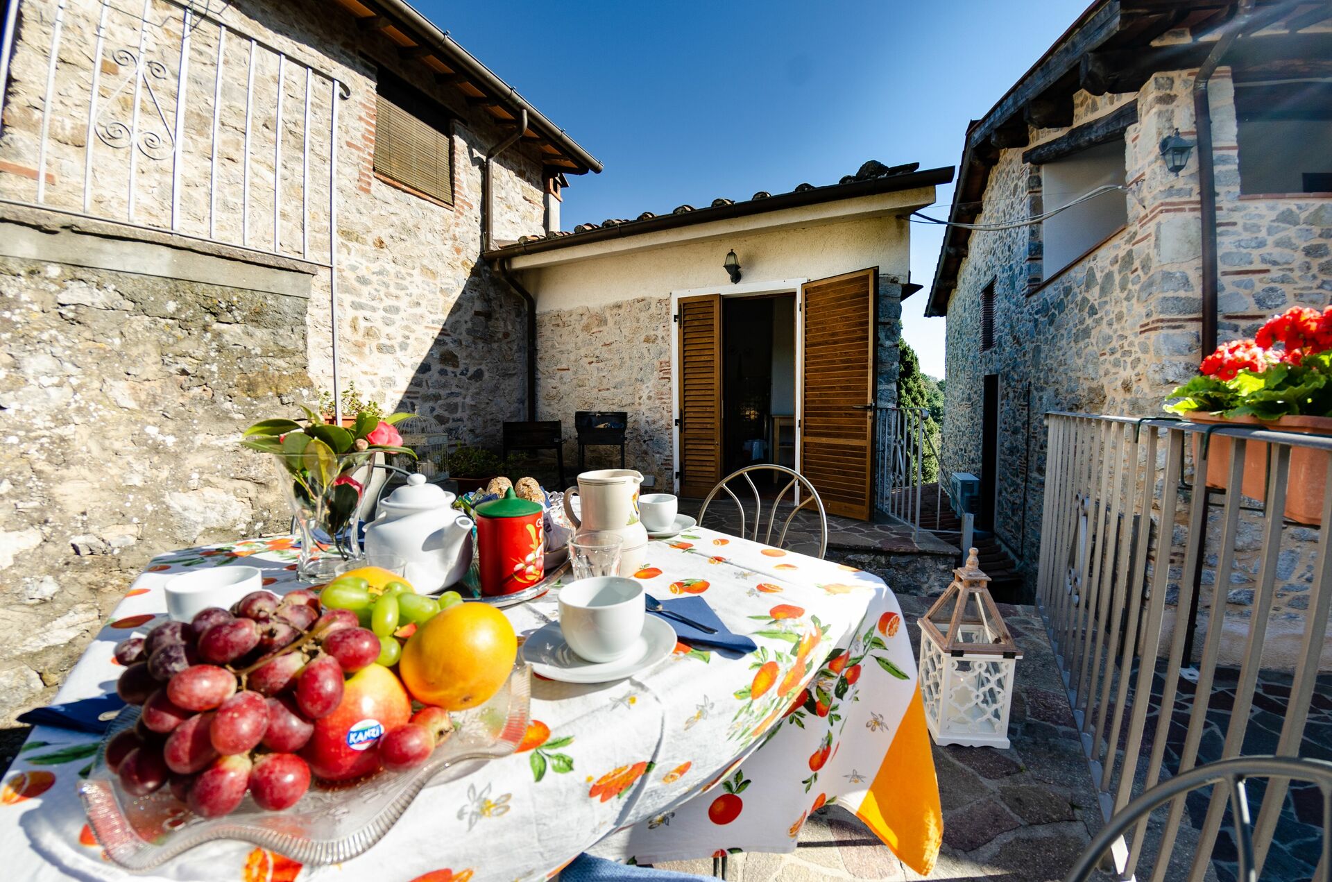 After arriving you’ll find a lovely clean well-maintained property perfect for a splendid vacation in Tuscany. For your enjoyment you will find a private pool where you can relax while enjoying a nice cold beverage after a hectic day of shopping. Sharing a meal with friends and family is a big part of the Tuscan culture. Take advantage of the kitchen to prepare meals using local produce while on your holiday. The kitchen includes toaster and stove, as well as, plenty of tableware and cutlery for up to ten people. Dine 'al fresco' like a real Tuscan, the fully furnished terrace is the perfect setting to enjoy food, family and the beautiful Tuscan weather.