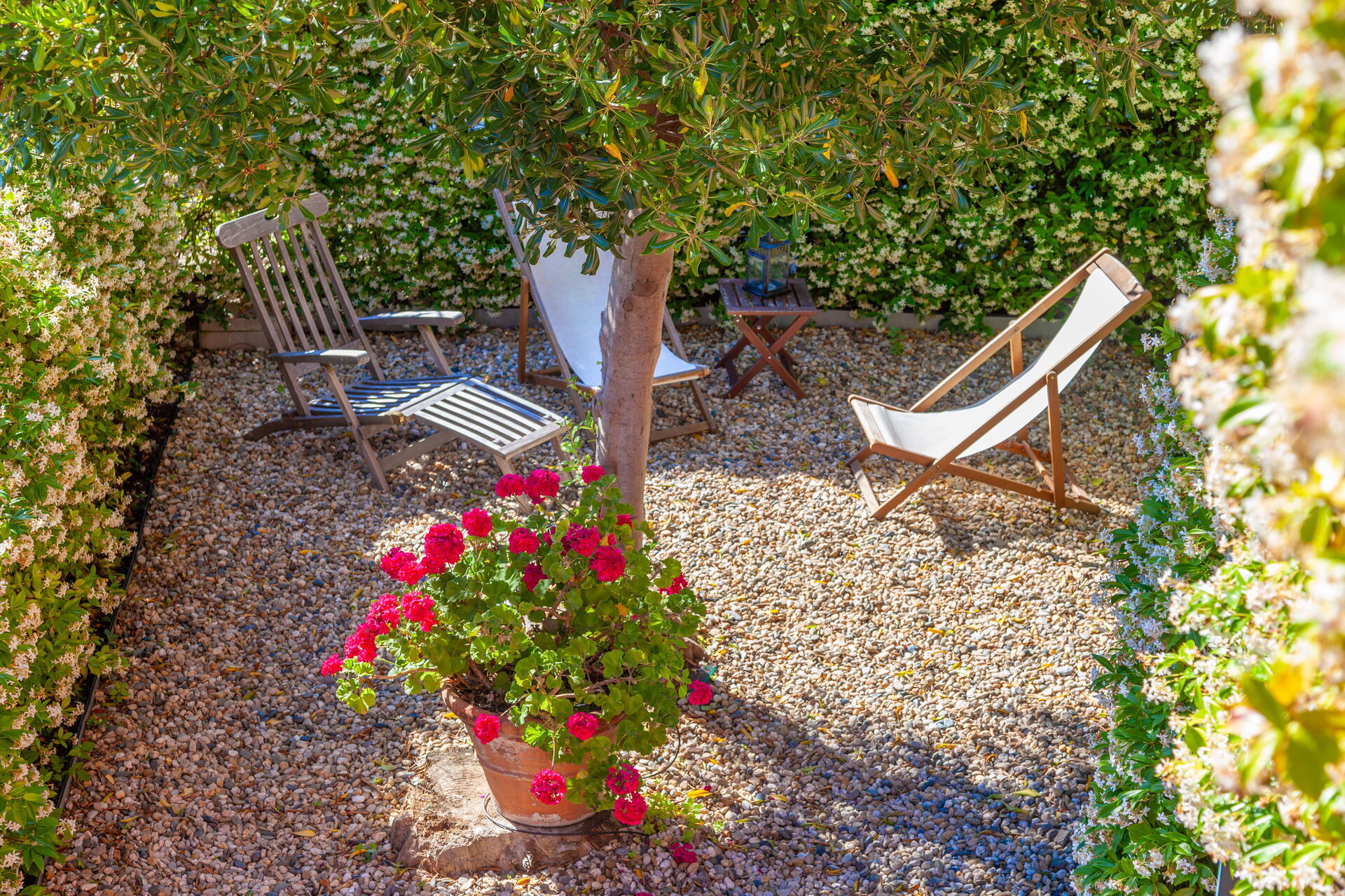 On the ground floor, with a small private garden, equipped with table, chairs and sunshade.