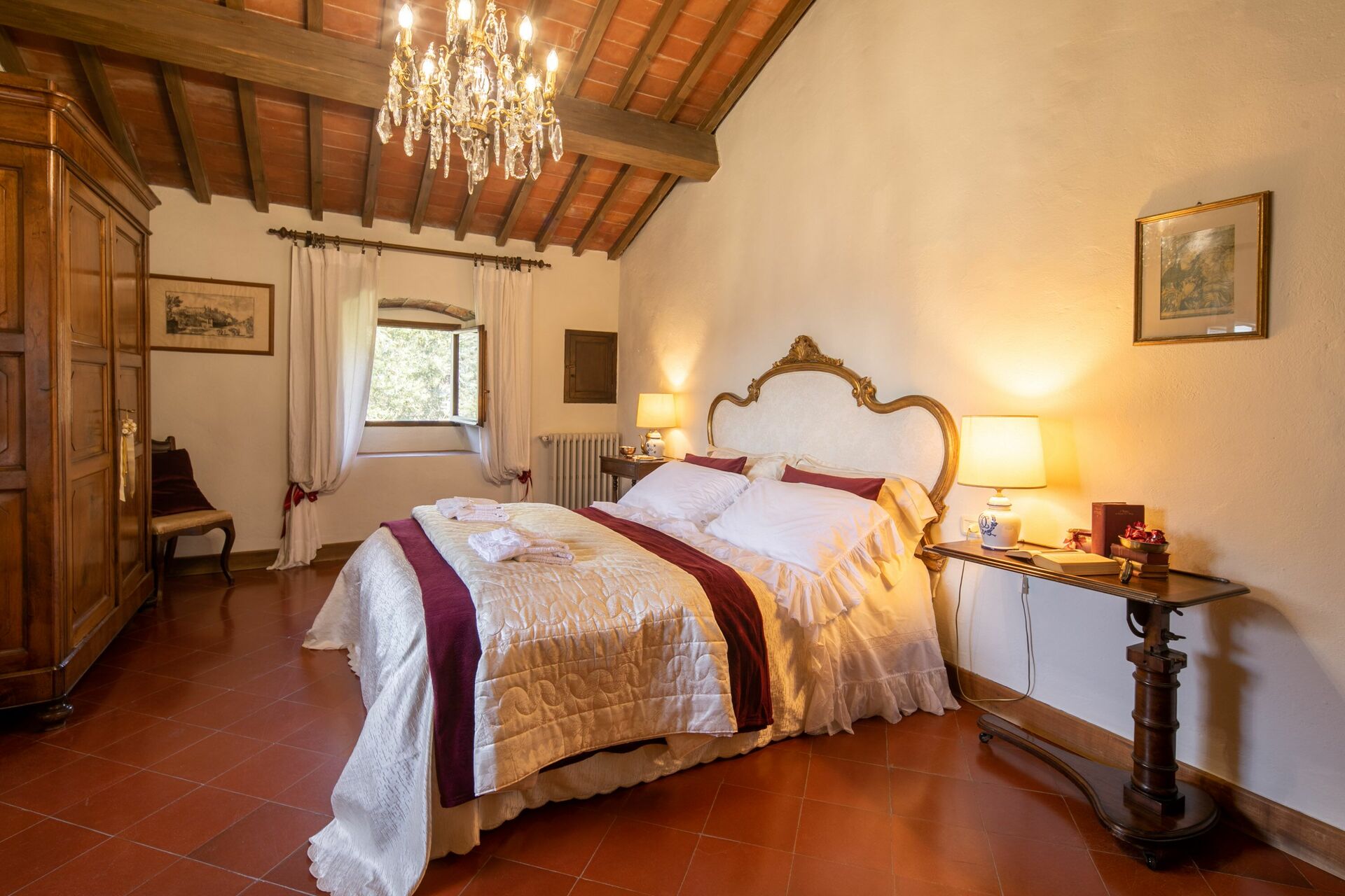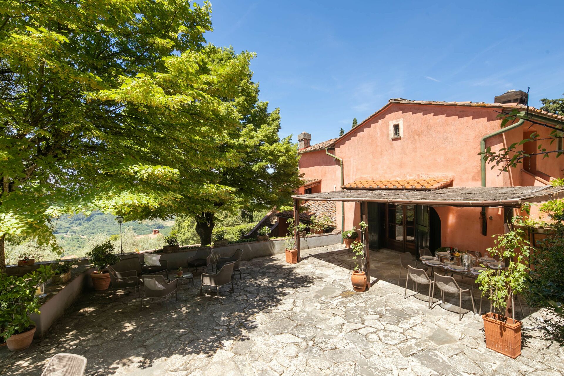 When you arrive at La Casa Di San Romolo you’ll find a nice clean well-maintained property with views of the city ideal for a peaceful holiday in Tuscany. Regardless of how you spend your days - sightseeing, shopping, visiting museums or just driving in the countryside, when you arrive home you can unwind with your family and friends at the pool for a perfect ending to another day in Tuscany. There is a kitchen including coffee machine, microwave, toaster and refrigerator, as well as, plenty of tableware and cutlery for up to ten people. If you prefer to dine 'al fresco', there is a fully furnished garden where you can enjoy the weather while dining outdoors.
