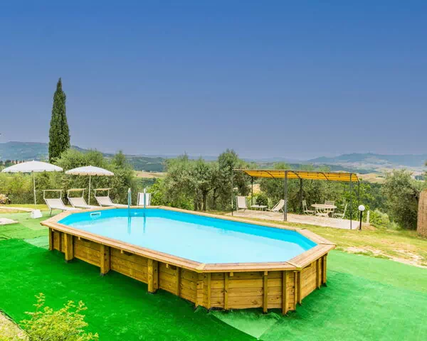Nestled on the outskirts of Villamagna, in the heart of Tuscany, Italy, "Miranda" is a large and comfortable semi-detached house that offers an ideal holiday rental experience for those seeking tranquility and natural beauty. Surrounded by trees and open fields, this charming property enjoys a quiet and sunny position just 150 meters from the center of the village, making it both a peaceful retreat and a conveniently located base for exploring the surrounding region. The property features a private natural garden where guests can unwind in a lush, green setting, as well as an above-ground swimming pool measuring 7 x 4 meters, available for use from May 1st to October 15th. Parking for up to 2 cars is available directly on the premises, ensuring a stress-free arrival and departure. The property is also equipped with internet WiFi, allowing guests to remain connected throughout their stay without compromising the relaxing atmosphere that defines this beautiful Tuscan retreat. Volterra, one of the most celebrated hilltop towns in Italy, lies just 14 kilometers away, placing "Miranda" in one of the most historically and culturally rich corners of the country.
