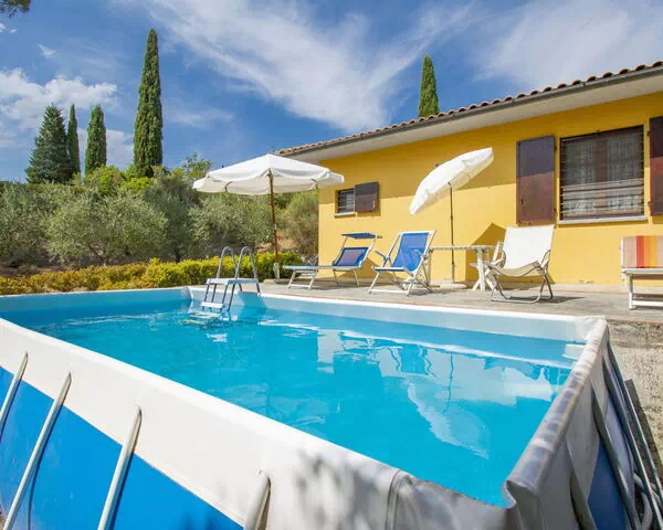 The outdoor spaces at Il Sorriso are truly exceptional, inviting you to immerse yourself in the natural beauty of the Tuscan countryside. The property sits within a natural estate of 16 hectares, offering a remarkable sense of space and privacy rarely found in holiday rentals. The private terraced garden features a delightful wildlife garden adorned with flowers, creating a peaceful and picturesque setting ideal for relaxation. A lovely terrace furnished with garden furniture and a barbecue provides the perfect setting for al fresco dining and leisurely evenings under the Tuscan sky. The above-ground swimming pool, measuring 3 x 5 meters with a depth of 125 cm, is available for use from April 29th to October 2nd, making it an ideal spot to cool off during the warm summer months.