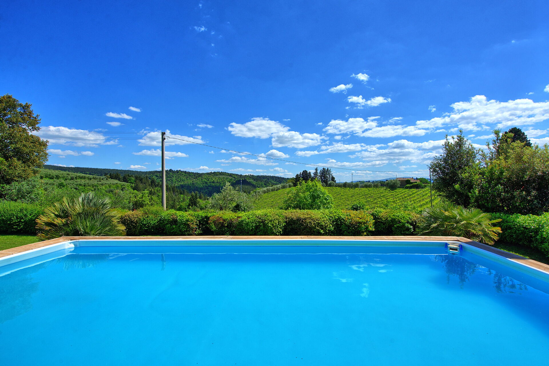 The private swimming pool is located about 50 meters away from the villa and can be reached by walking under the historic castle walls. The location of Villa Paneretta is very strategic: you are halfway between Florence and Siena and in the heart of the Chianti Classico region.