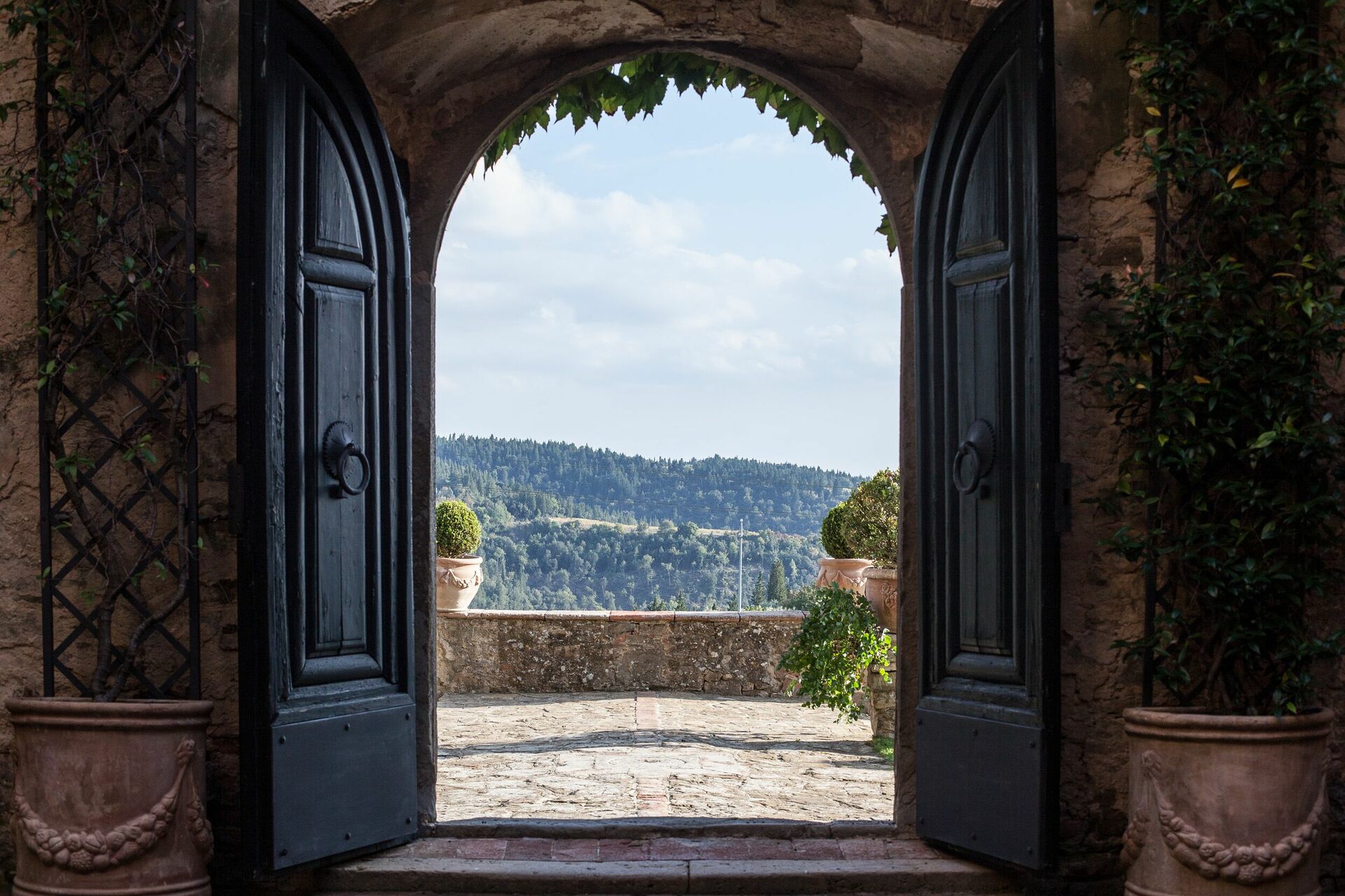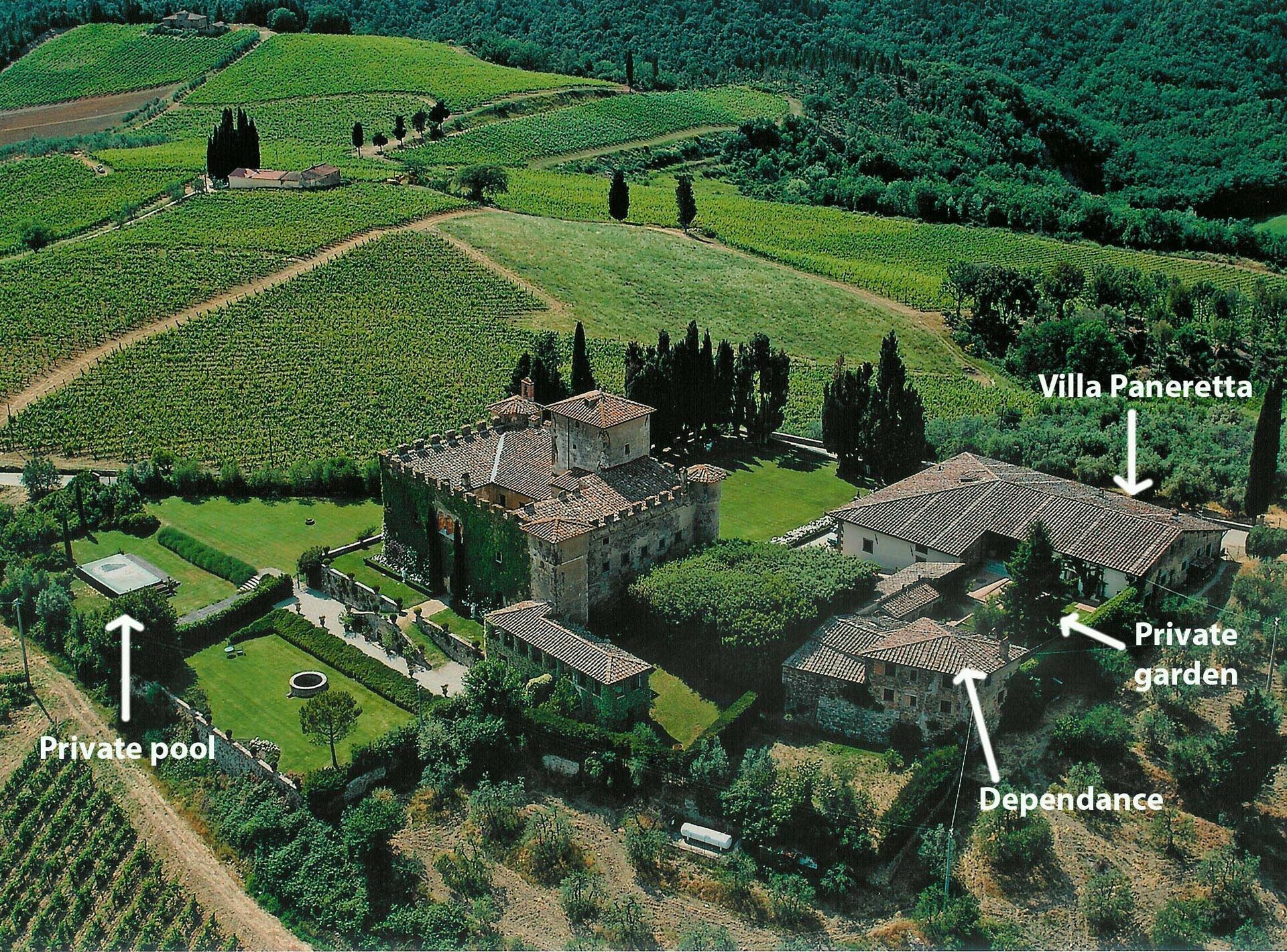 Surrounded by 309 hectares (woods, vineyards and olive groves) it is part of a magnificent historic venue dating back to the thirteenth century and also a farming estate producing wine and oil. Villa Paneretta is next to the ancient Castello della Paneretta and its cellars: the production of Chianti Classico wine represents the main activity and guests of Villa Paneretta will have the privilege of tasting the unique flavor of its bottles of wine directly on the spot. The castle is open (at fixed times) for tastings and visits but the guests of Villa Paneretta will always enjoy the exclusivity of their outdoor spaces and swimming pool.