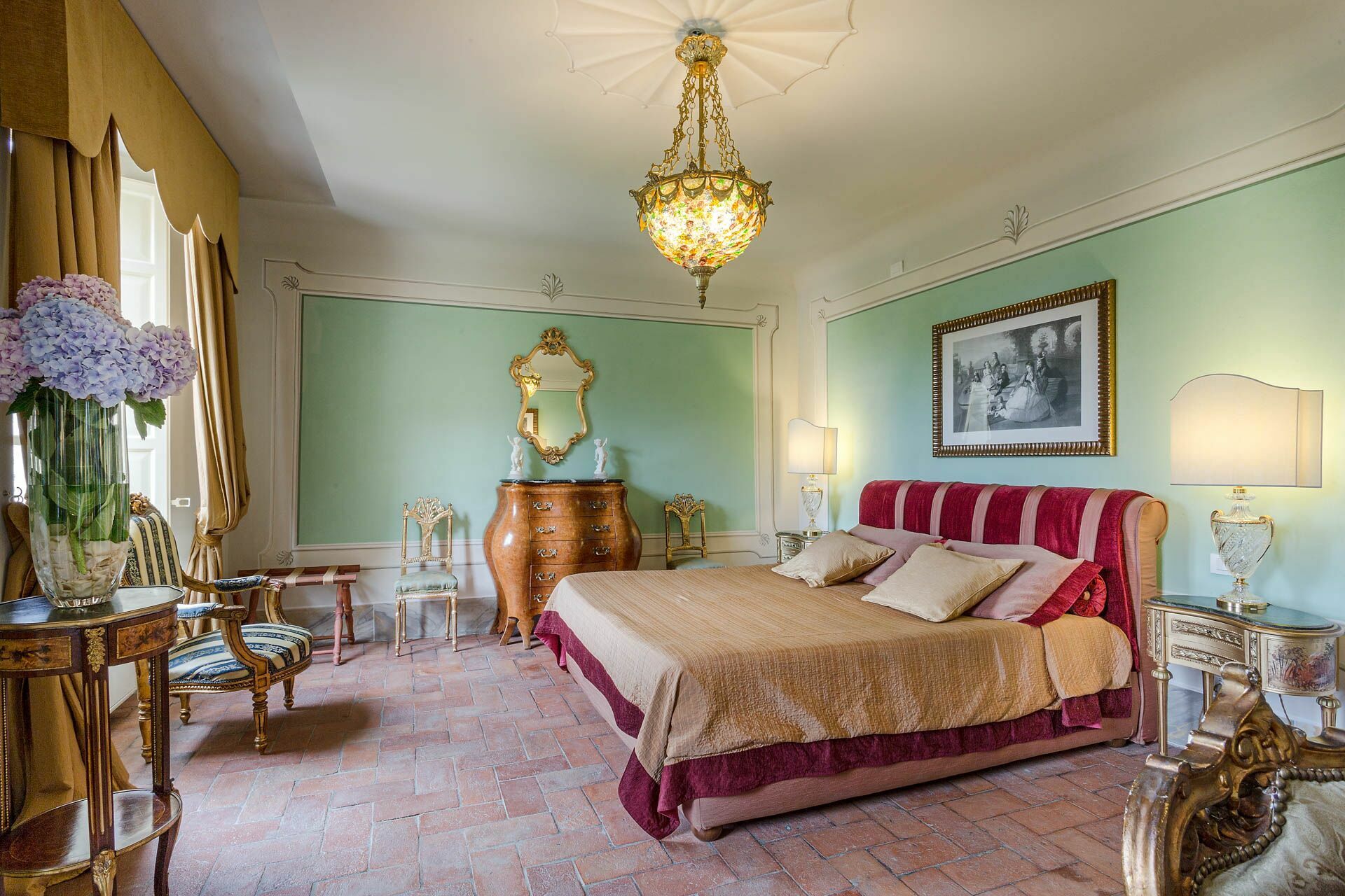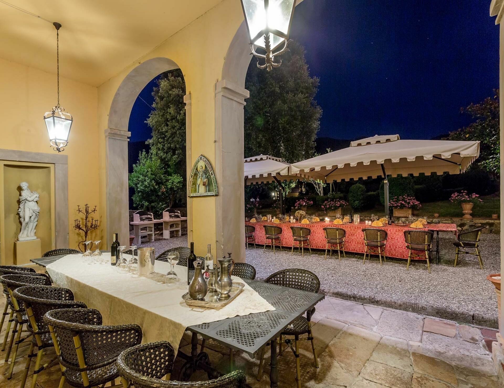 Vacation rental Villa Cantignano is a beautiful property that includes air conditioning, WiFi internet and private pool. The property can accommodate up to 22 people comfortably in 11 bedrooms with 11 bathrooms. Villa Cantignano is located 12 km (7 mi) from Capannori, Italy and only 9 km (6 mi) from Lucca. There is a golf course nearby if you'd like to get in a round or two while on holiday.