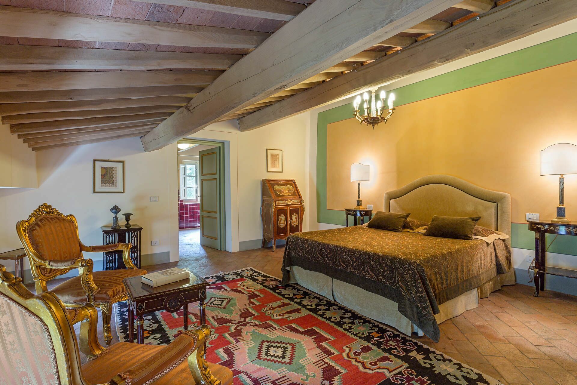 Bedroom + Ensuite Bathroom 5: double bed (length: 2m, width: 1.7m), air conditioning, basin, toilet, bidet, shower.
