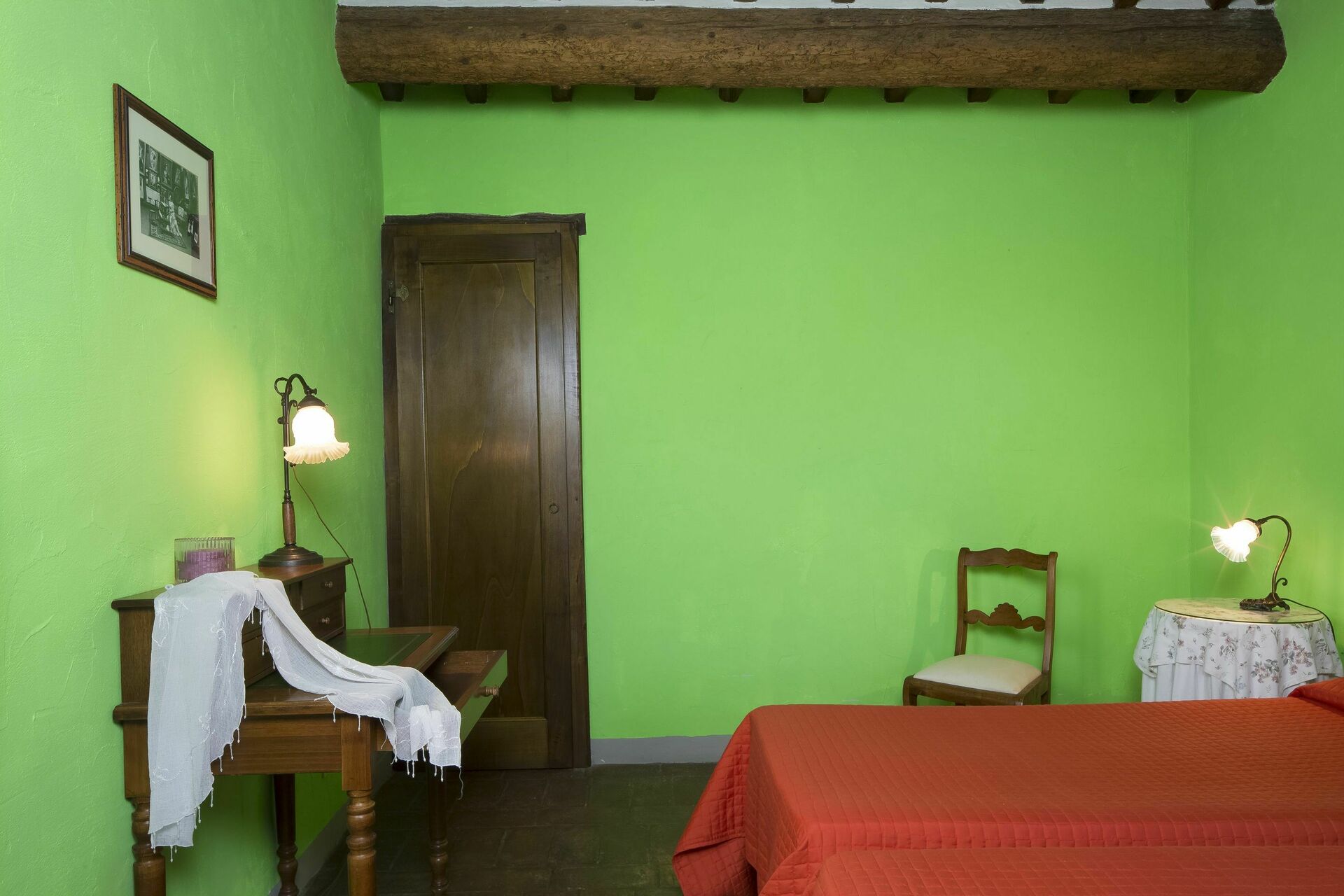 Bedroom + Ensuite Bathroom (25 m2): double bed, WIFI internet, mosquito net, satellite tv, armchair, working desk, basin, toilet, bidet, shower, hairdryer.